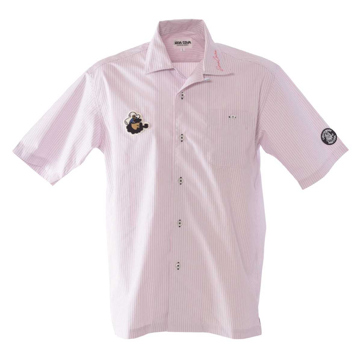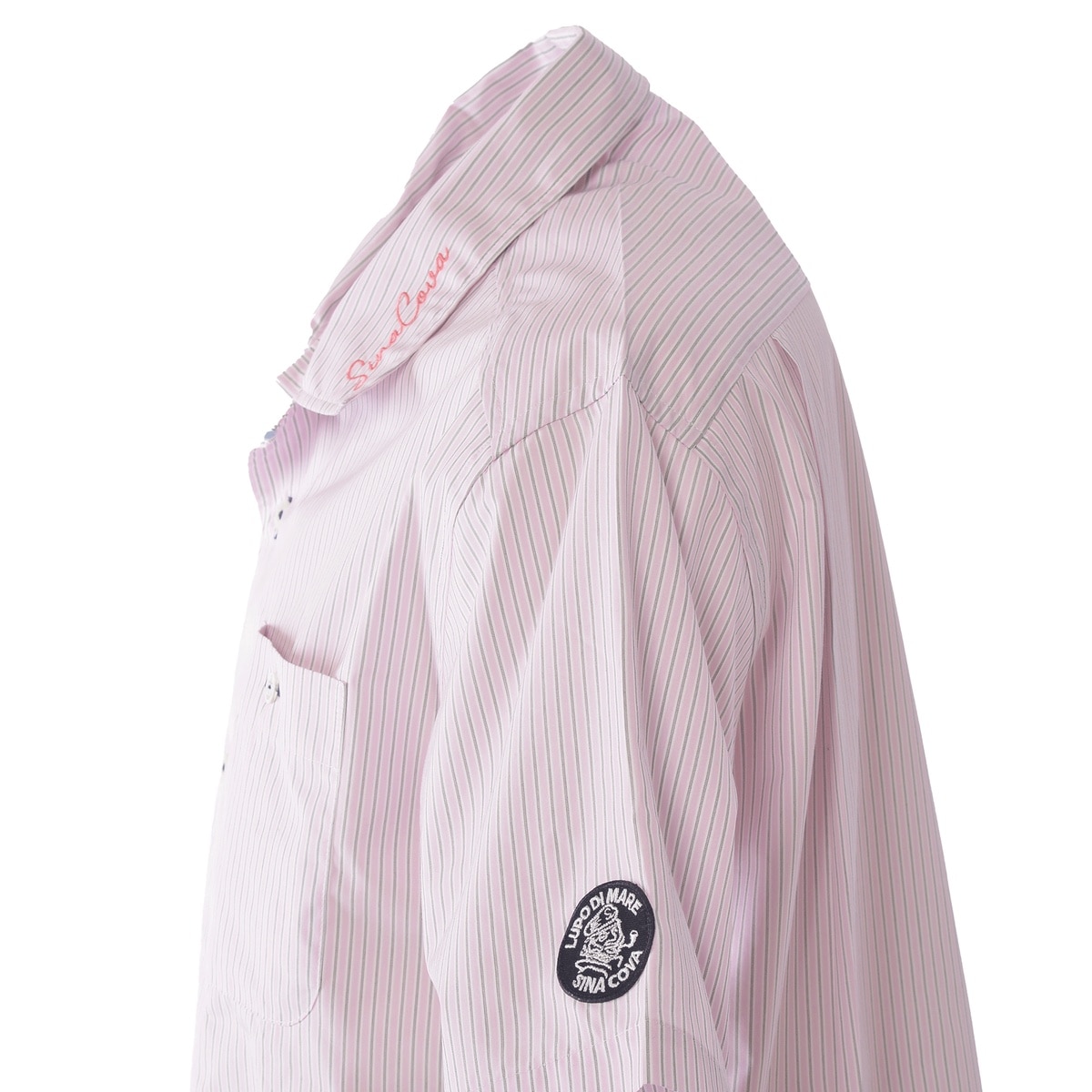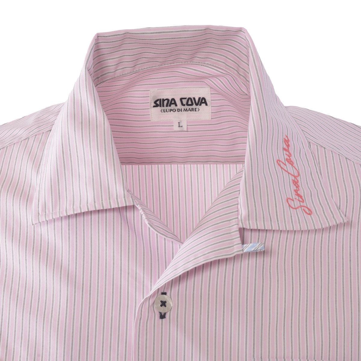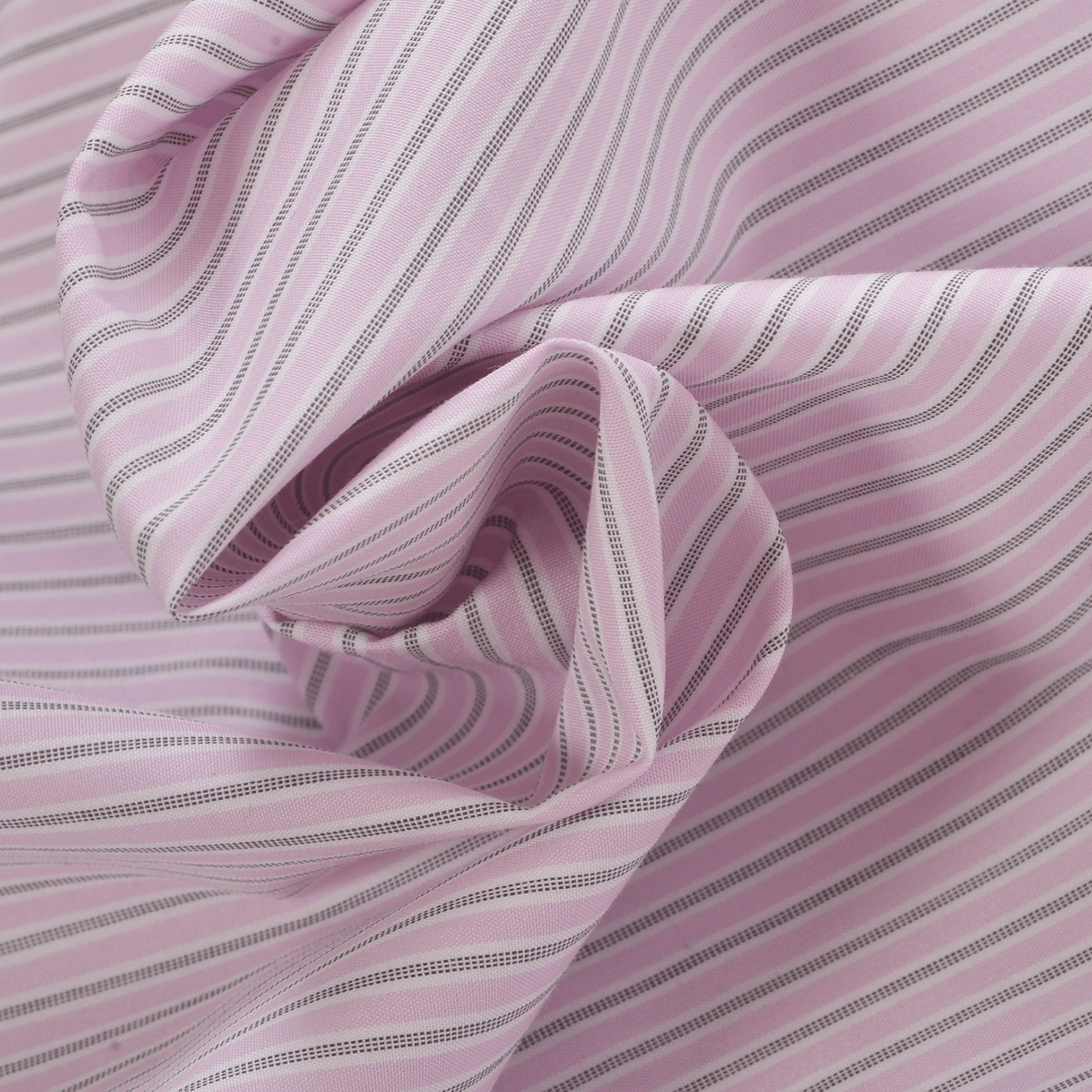 細かなストライプ柄は落ち着いた印象を与え、夏の大人シャツスタイルとしてお勧めです。