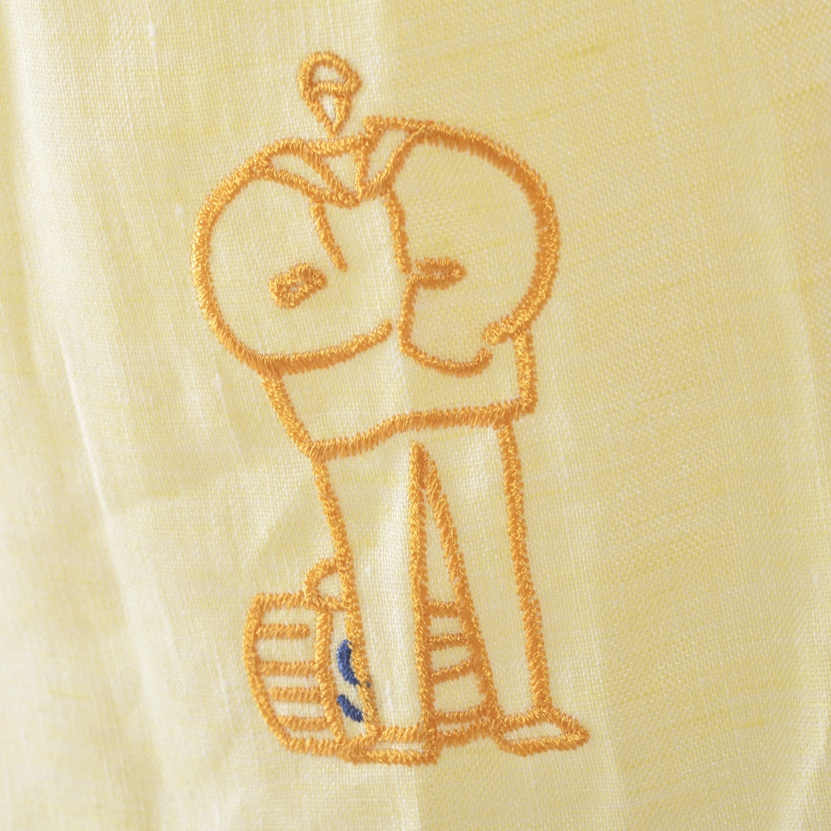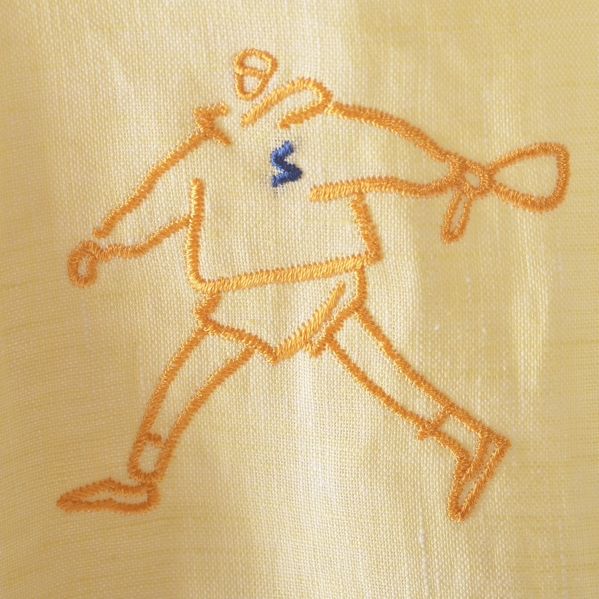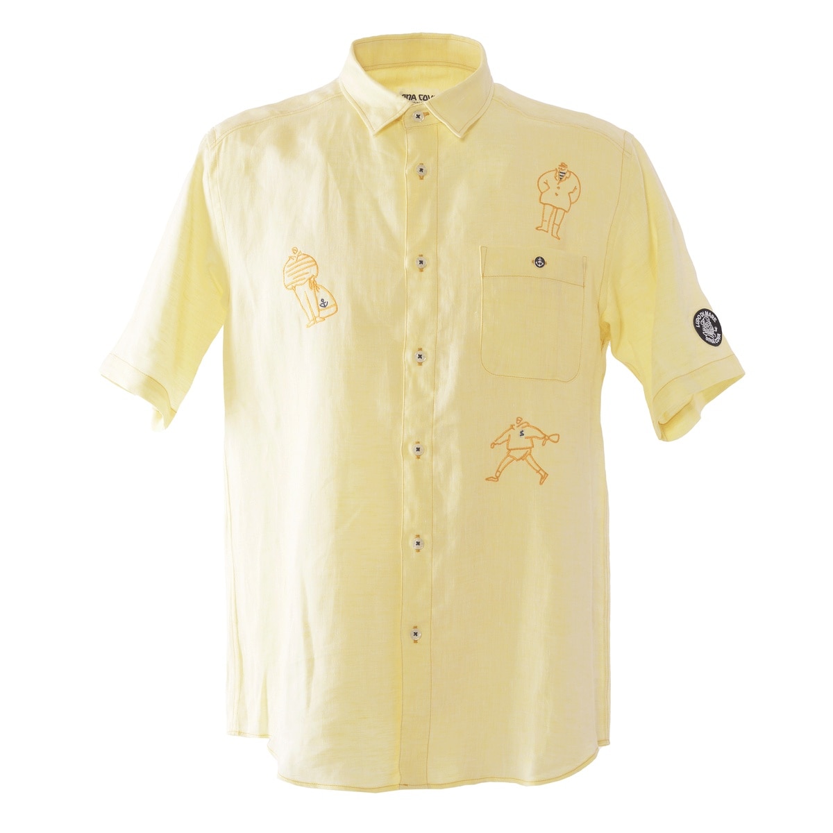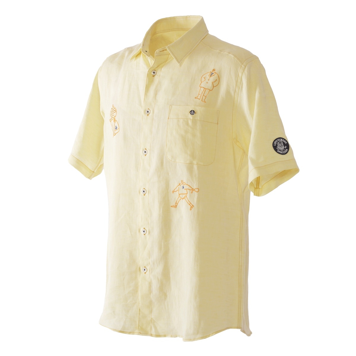 キャンプテンとクルーの刺繍をフロントには前面にバックには右裾にさり気なくデザインした麻100%半袖レギュラーシャツです。
