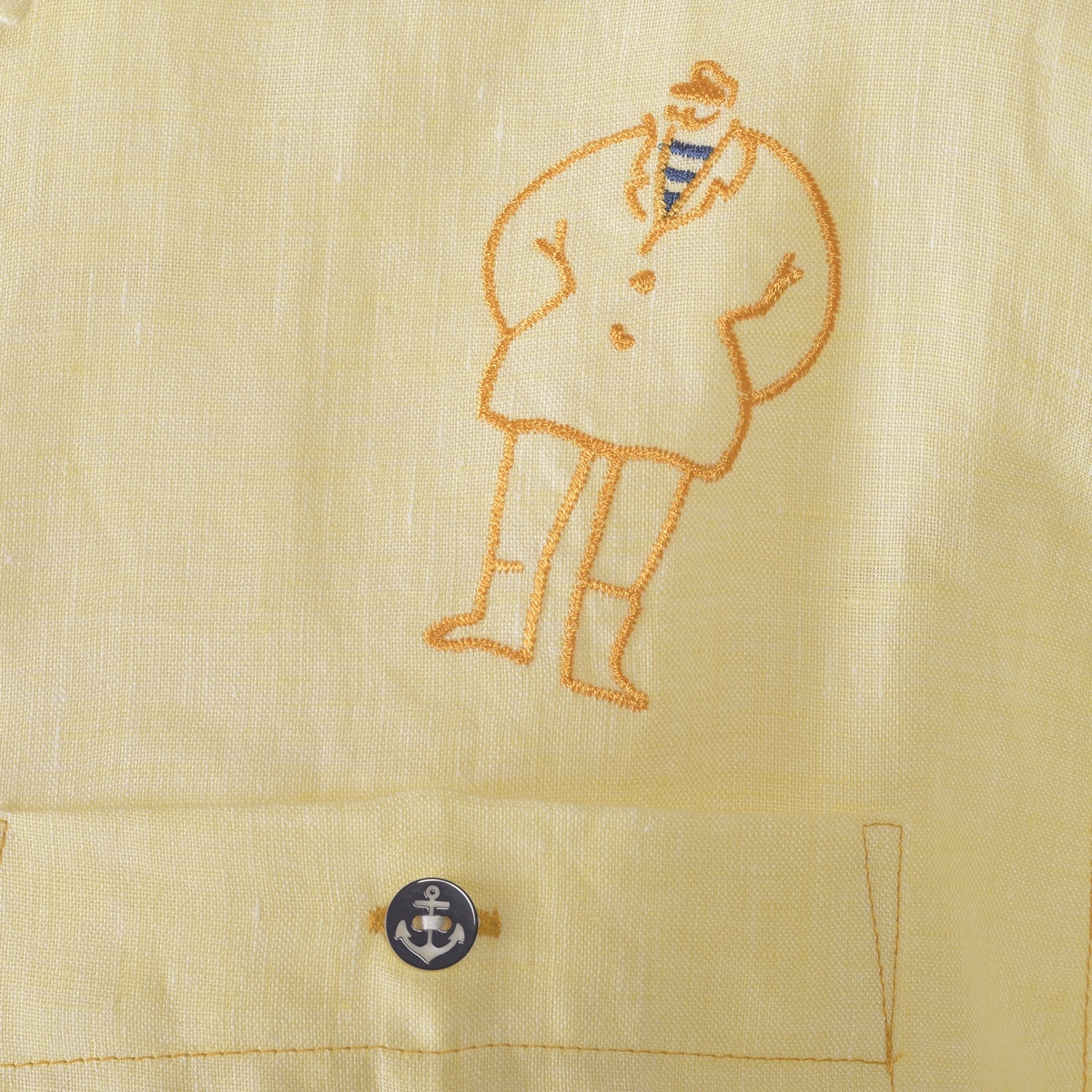 ミルキーカラーでの展開で春夏のムードを一気に上げる半袖シャツです。体の線を拾わないボックスシルエットです。シャツの定番として幅広い層から愛されているレギュラーカラーの衿型です。盛夏にぴったりな清涼感のある細番手フレンチリネン100%のシャンブレー素材を使用。麻特有のシャリ感を兼ね備えながら、発色性が良く、ソフトで軽く、通気性も良く洗濯してもへたれにくい強度を持っています。アイテム全体にキャプテンや水夫モチーフの刺繍を施してブランドらしさを演出しています。大人っぽく同系色でまとめ、高級感のある仕上がりです。