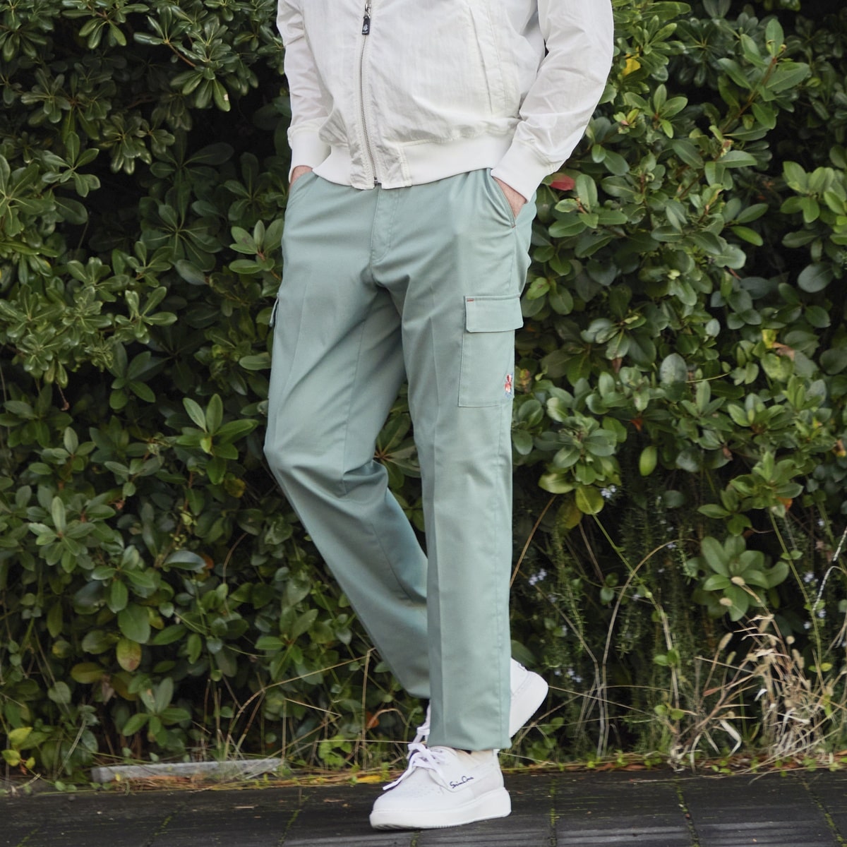 裾にかけてやや細くなるテーパードシルエットでカーゴパンツの無骨さ抑えキレイめスタイリッシュなカーゴパンツに仕上げました。