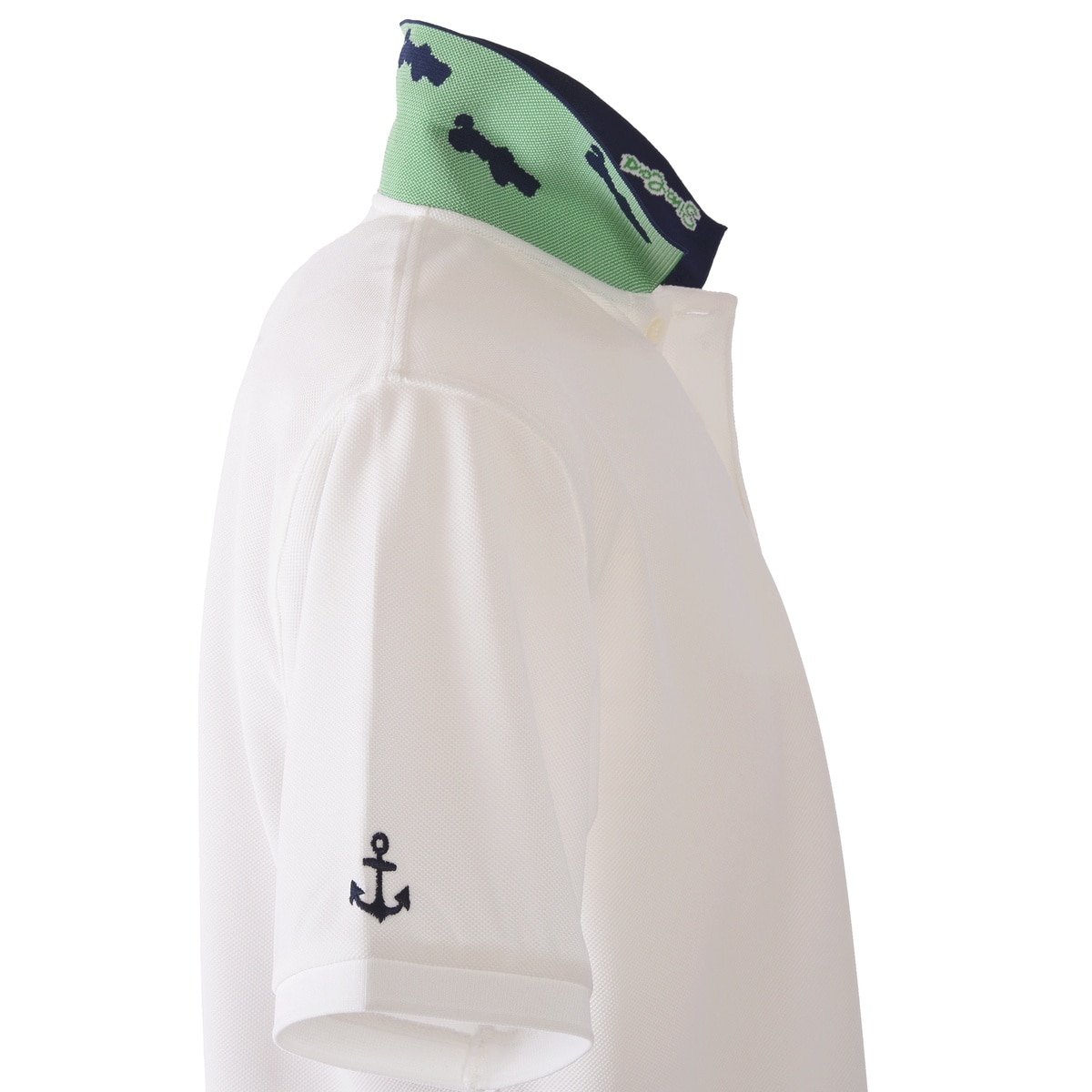 衿に「SINA COVA」ロゴをジャガードでデザインし胸元と袖にワンポイントワッペンモチーフを付けた半袖ポロシャツです。夏のゴルフなどのスポーツウェアに適した高機能素材を使用しています。・吸水速乾・ゴルフウェア・東レフィールドセンサー生地使用・べたつきにくい鹿の子生地・その他キングサイズ有り