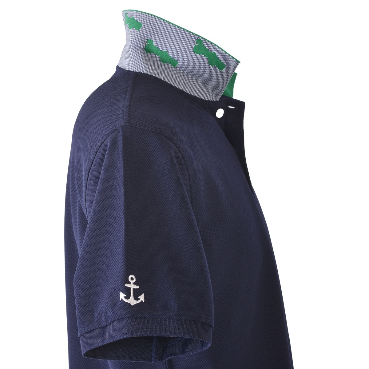 衿に「SINA COVA」ロゴをジャガードでデザインし胸元と袖にワンポイントワッペンモチーフを付けた半袖ポロシャツです。夏のゴルフなどのスポーツウェアに適した高機能素材を使用しています。・吸水速乾・ゴルフウェア・東レフィールドセンサー生地使用・べたつきにくい鹿の子生地・その他キングサイズ有り