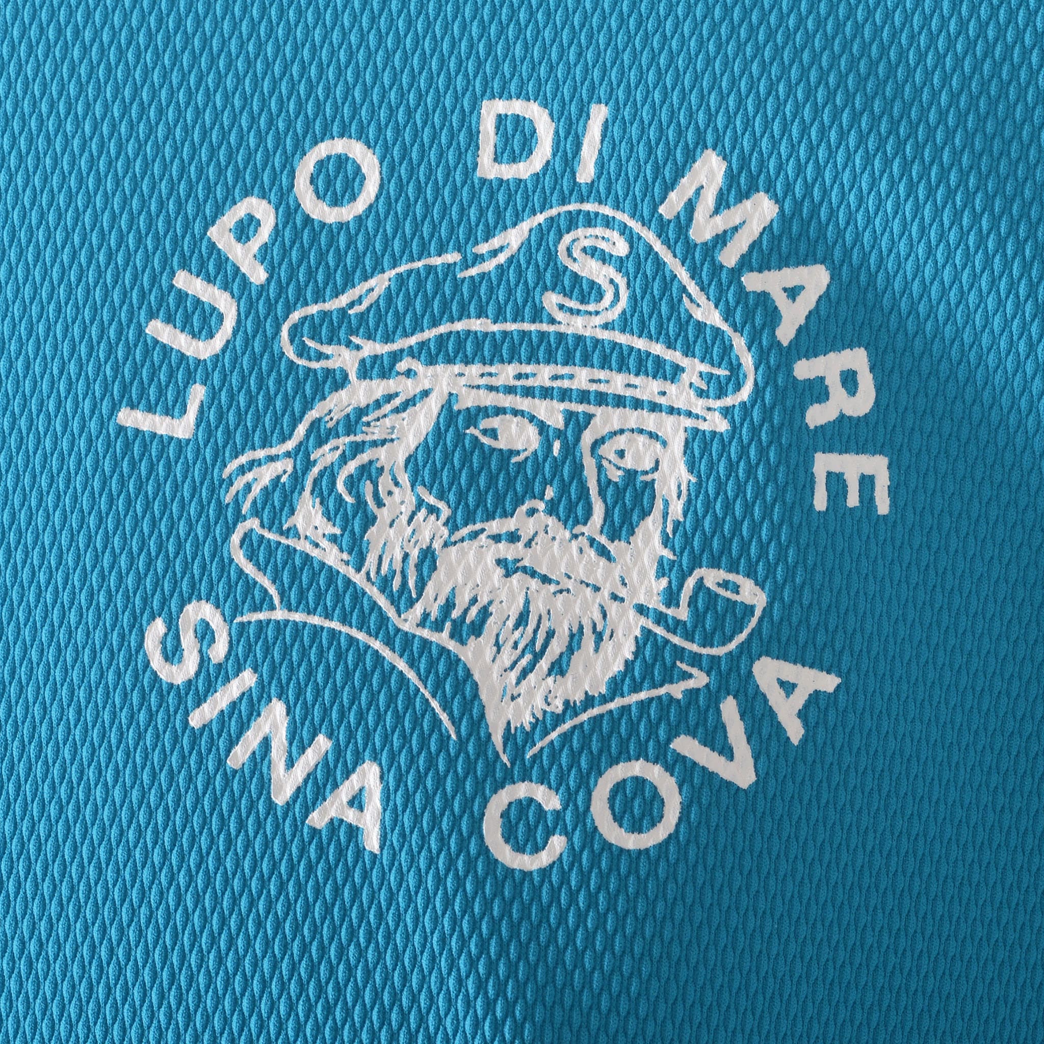 フロントにSINA COVAシンボルロゴ、バックに「SINA COVA LUPO DI MARE」、スリーブにイカリのプリントをデザインしたハイネックTシャツです。
