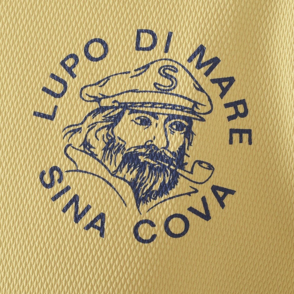 フロントにSINA COVAシンボルロゴ、バックに「SINA COVA LUPO DI MARE」、スリーブにイカリのプリントをデザインしたハイネックTシャツです。