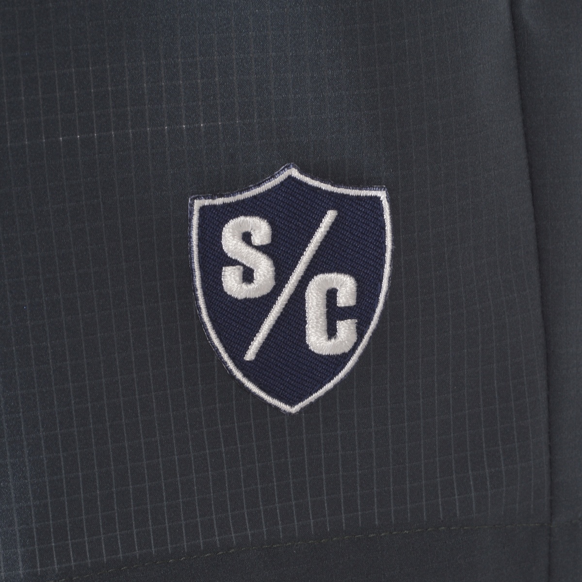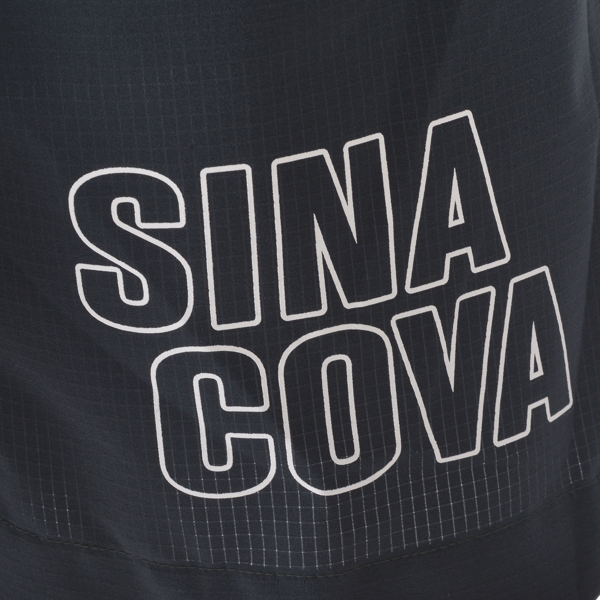 フロントにエンブレムワッペン、バックに「SINA COVA」文字をプリントでデザインしたショートパンツです。