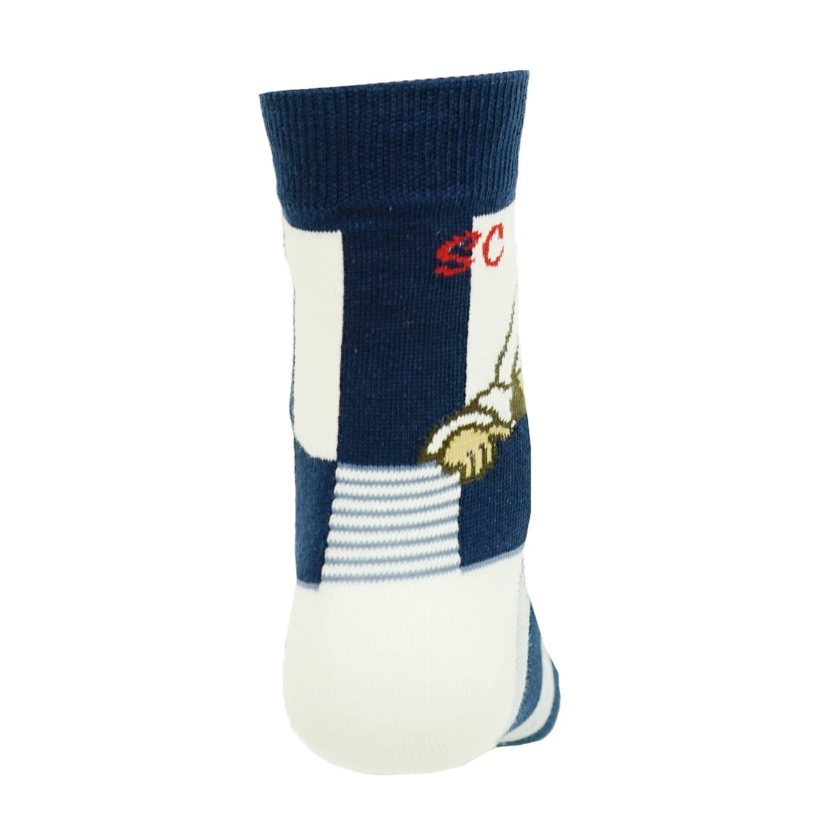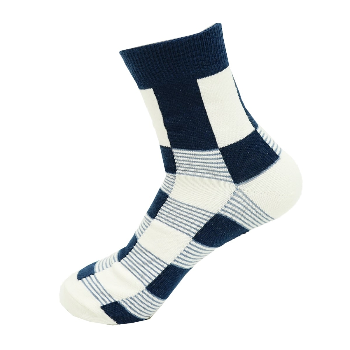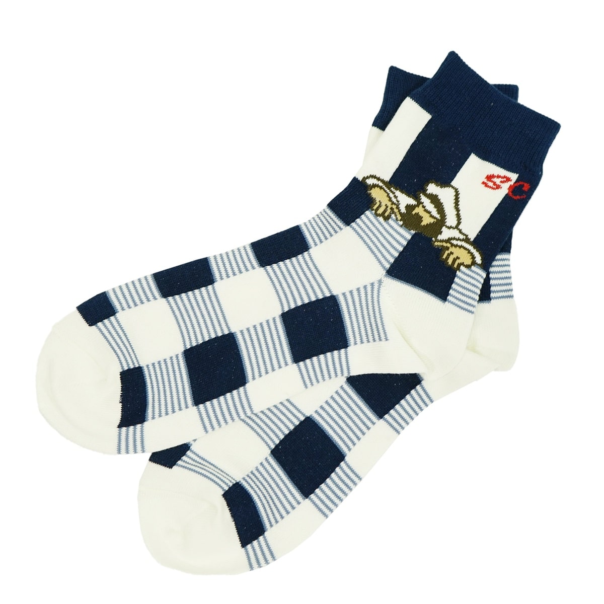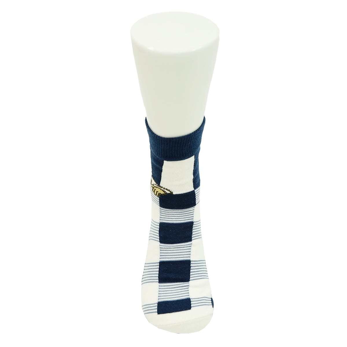 ストライプとチェックで切り替えたデザインにキャプテンをジャガードで表現したソックスです。