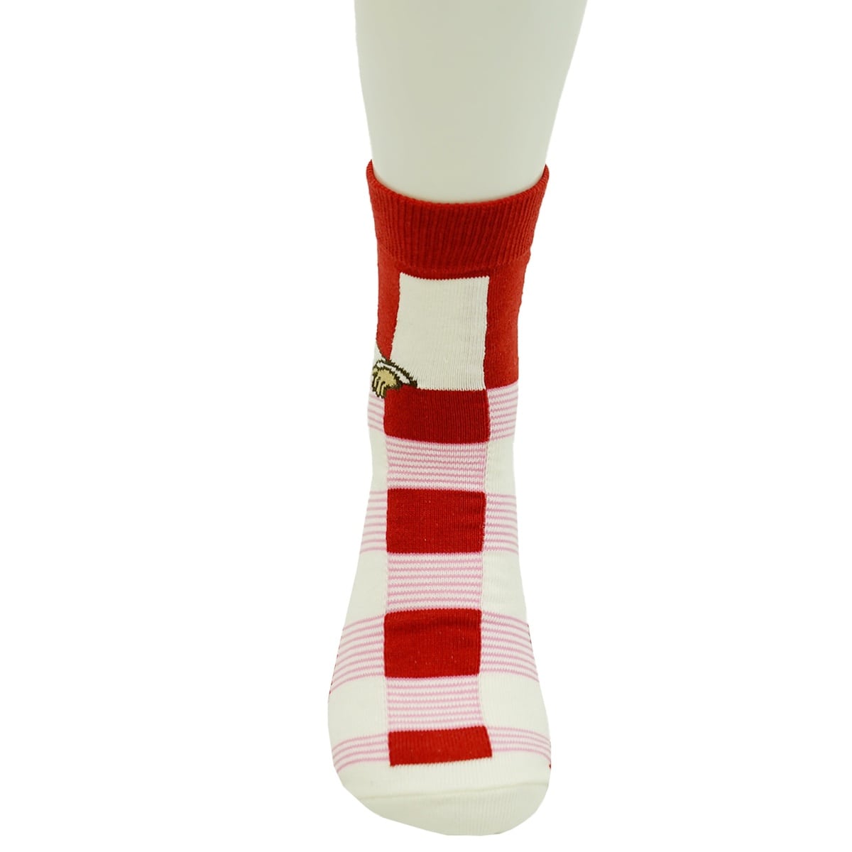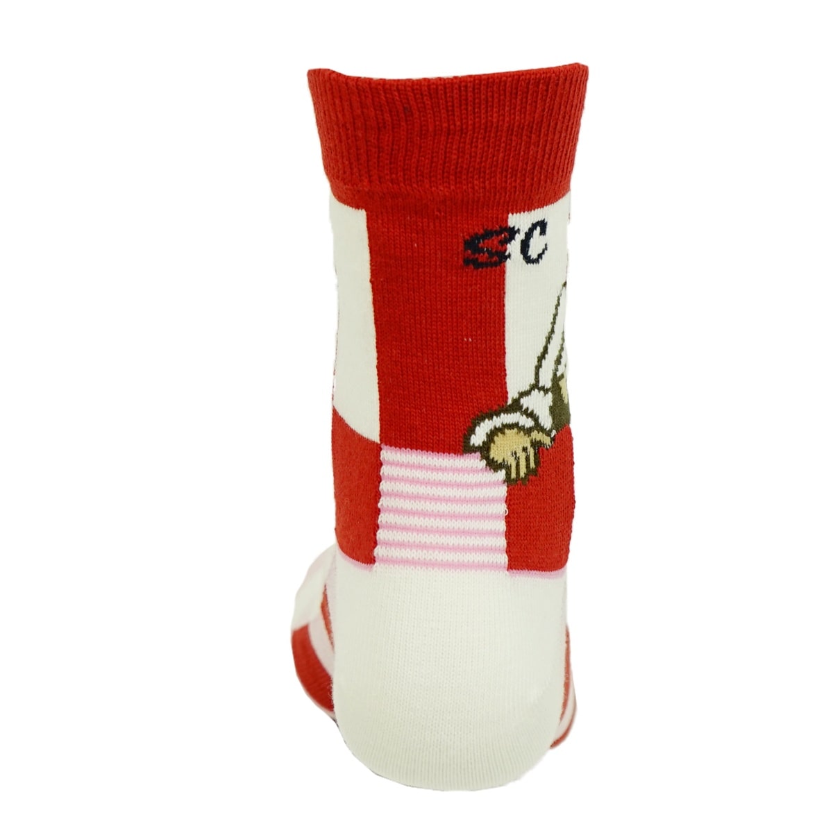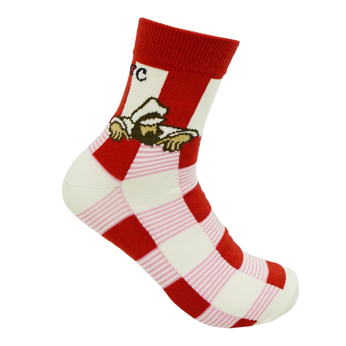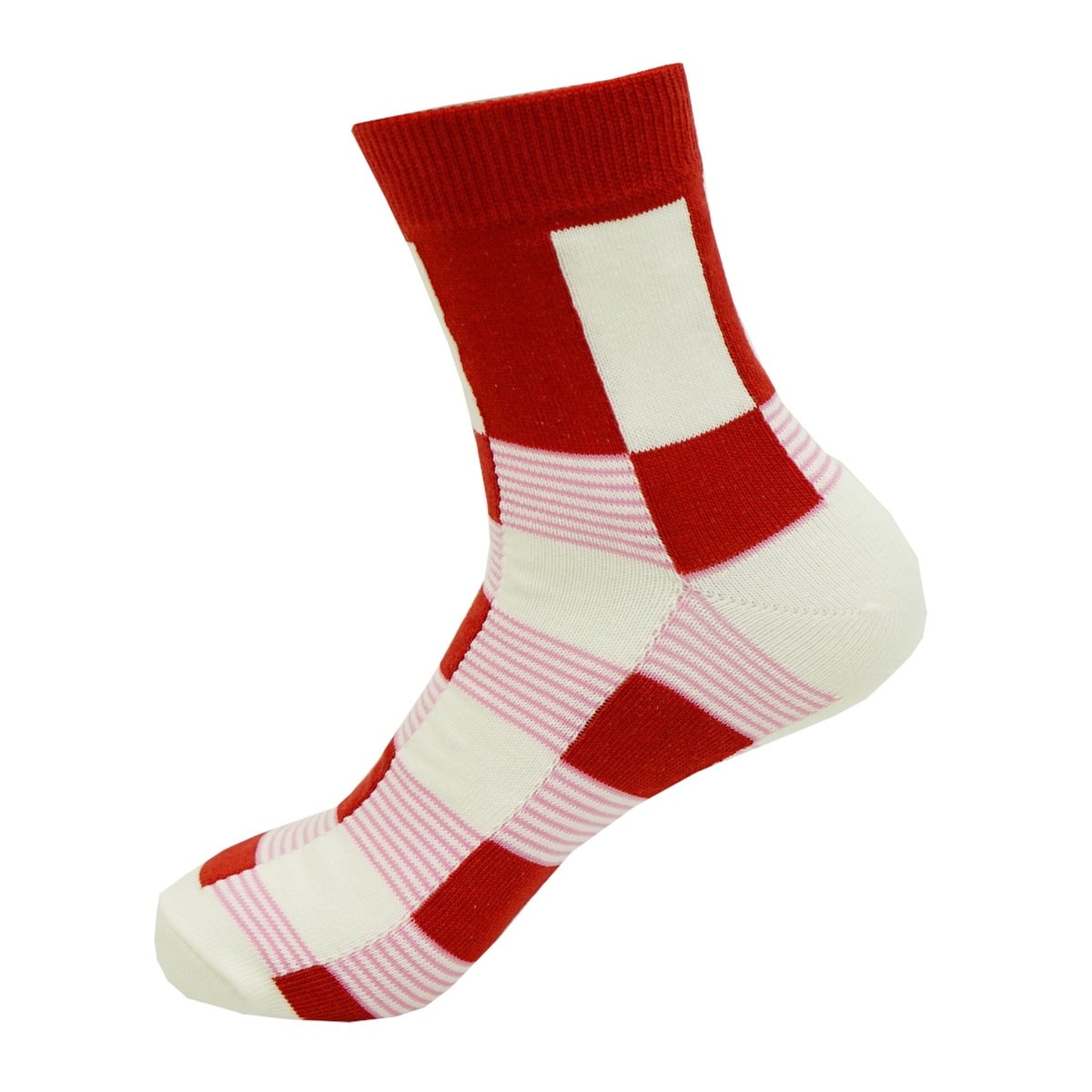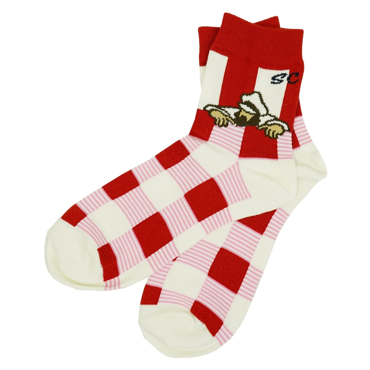 ストライプとチェックで切り替えたデザインにキャプテンをジャガードで表現したソックスです。