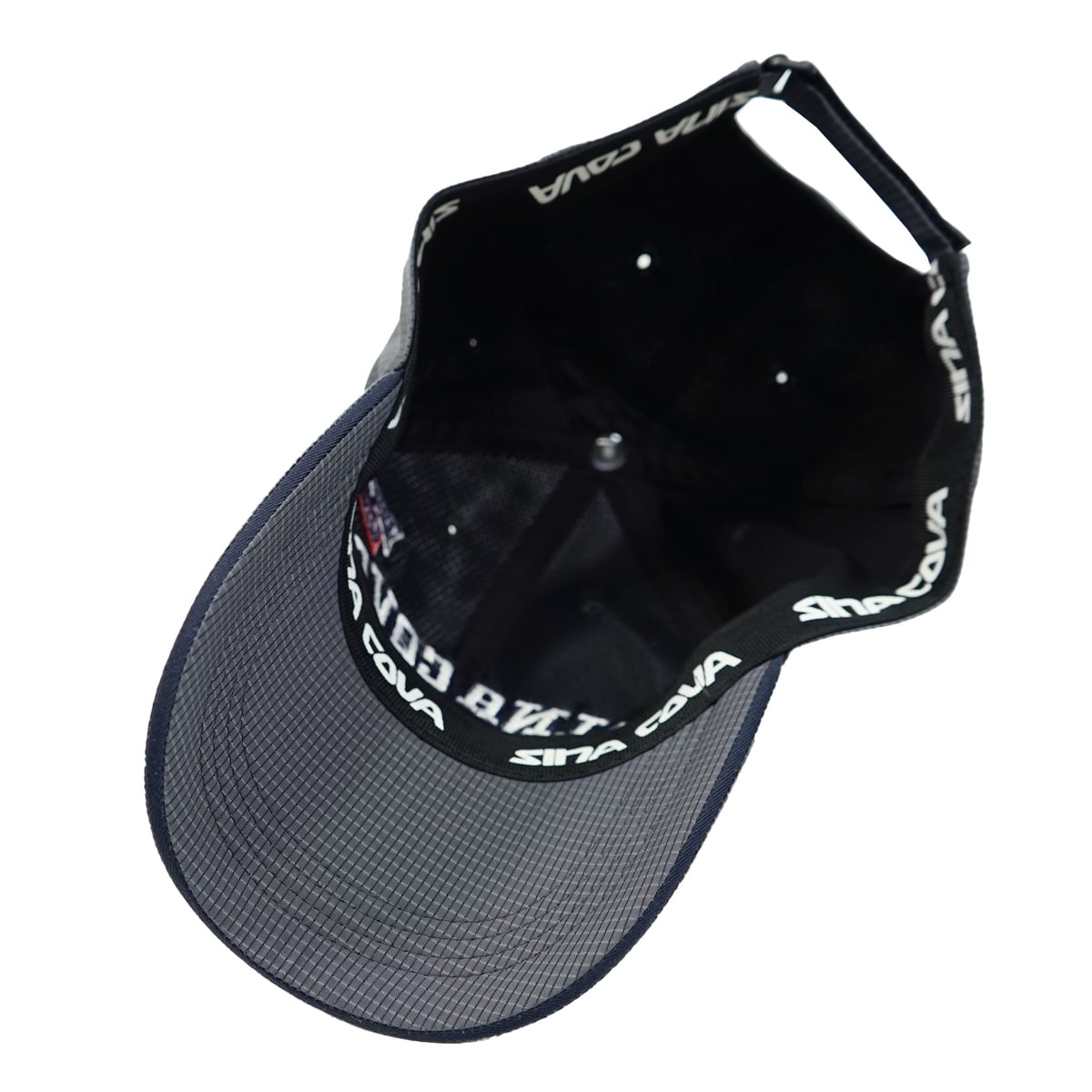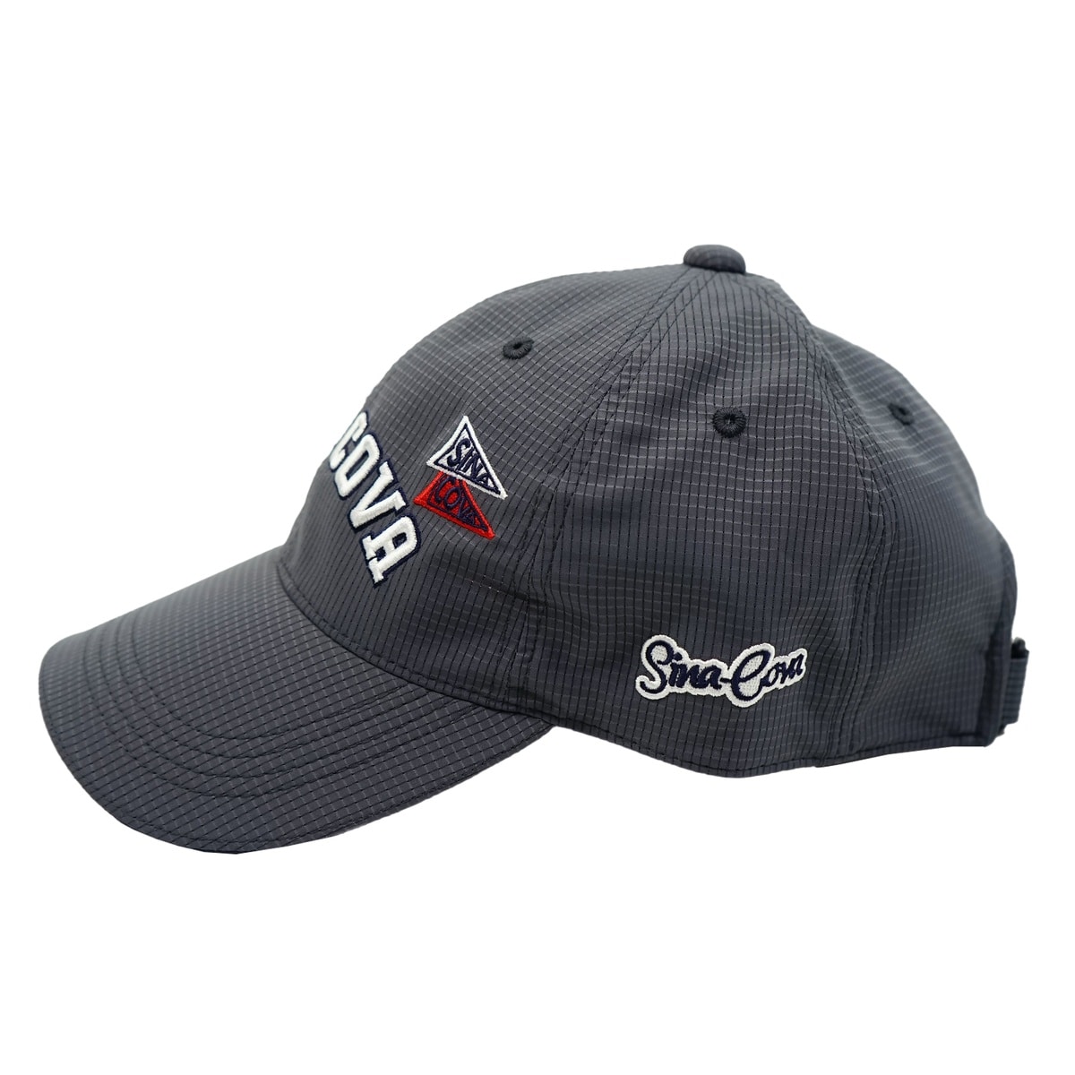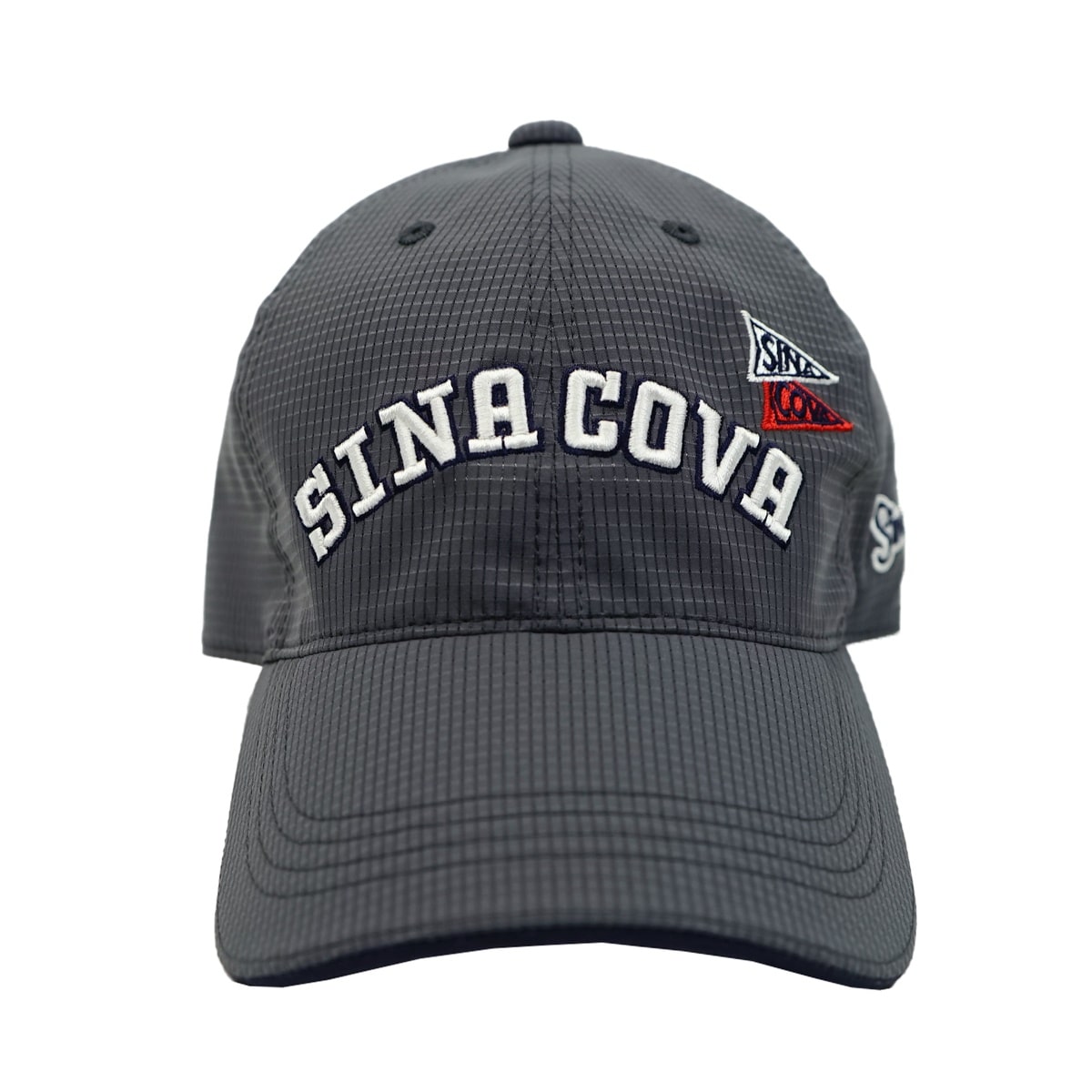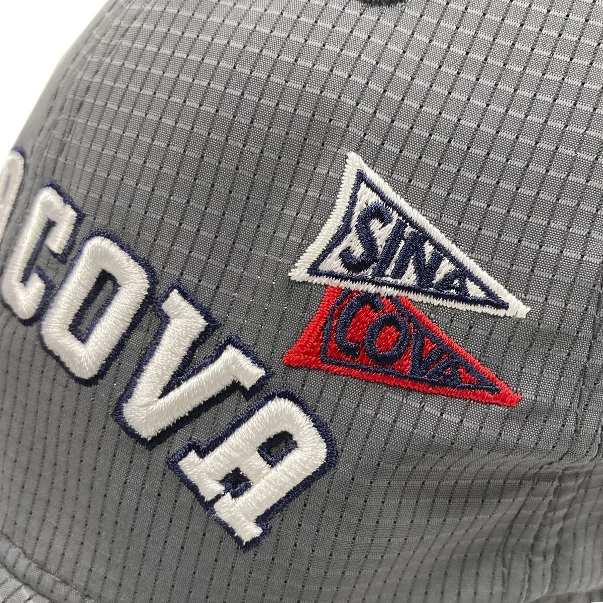フロントとサイドに「SINA COVA」文字刺繍とフラグモチーフをデザインしたラウンディッシュキャップです。