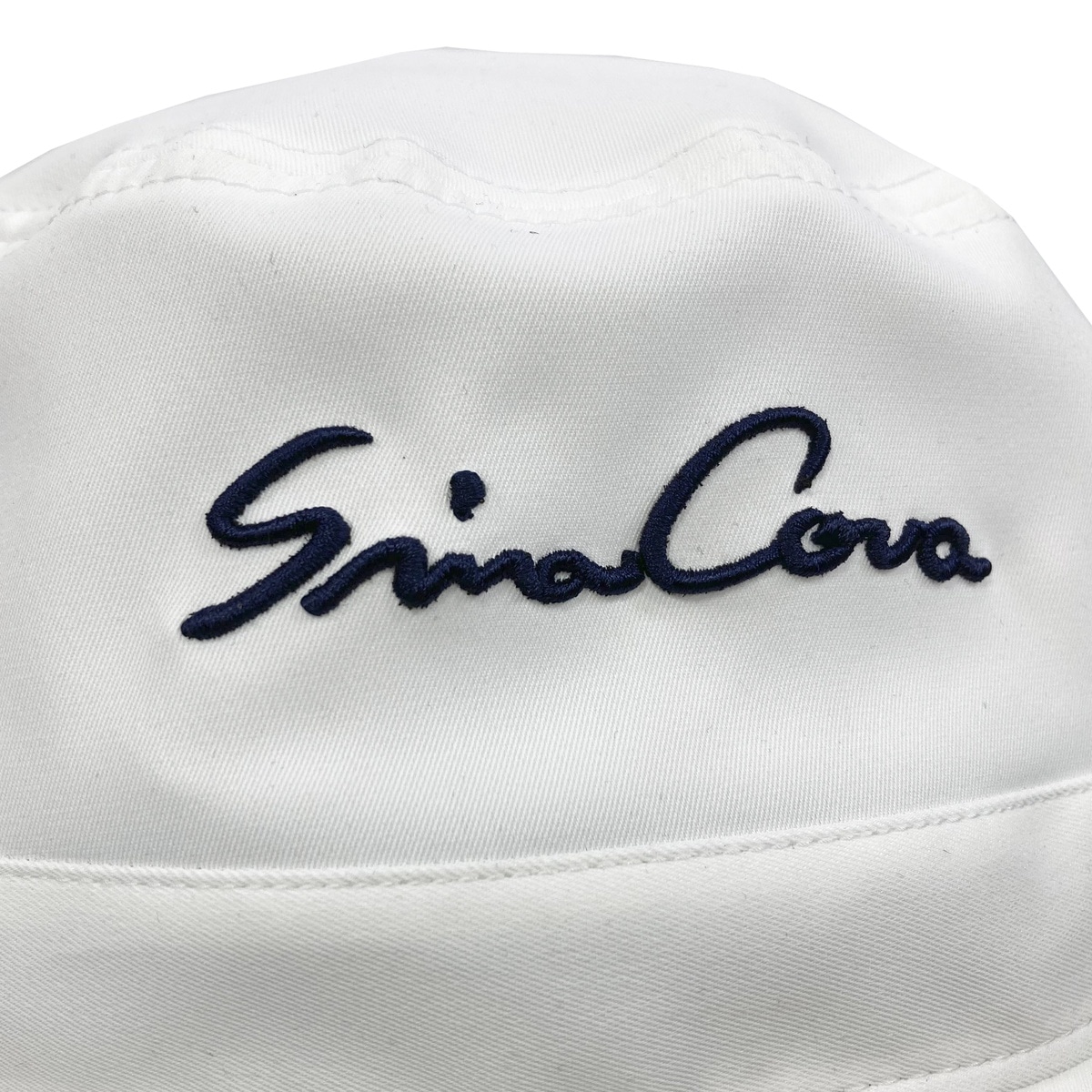 フロントに「SINA COVA」筆記体ロゴを刺繍、バックに厚めなプリントで立体的に「SC」ロゴをデザインしたバケットハットです。