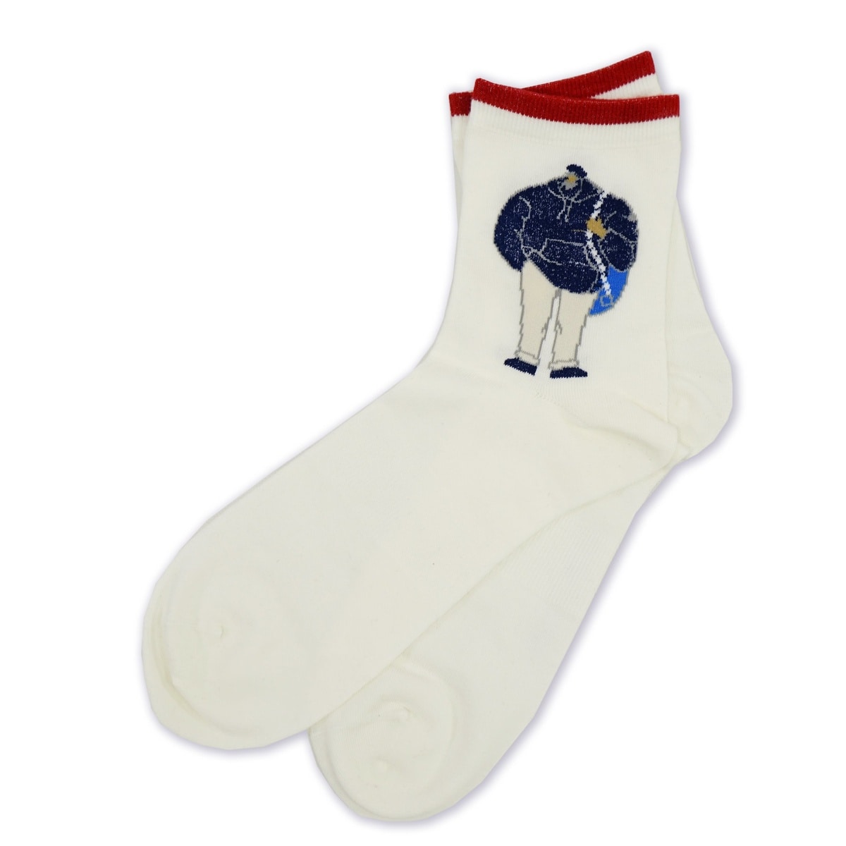 ローファーやスニーカーに合わせて外出するときや、座敷のある店へ上がるときに使いやすいソックスです。