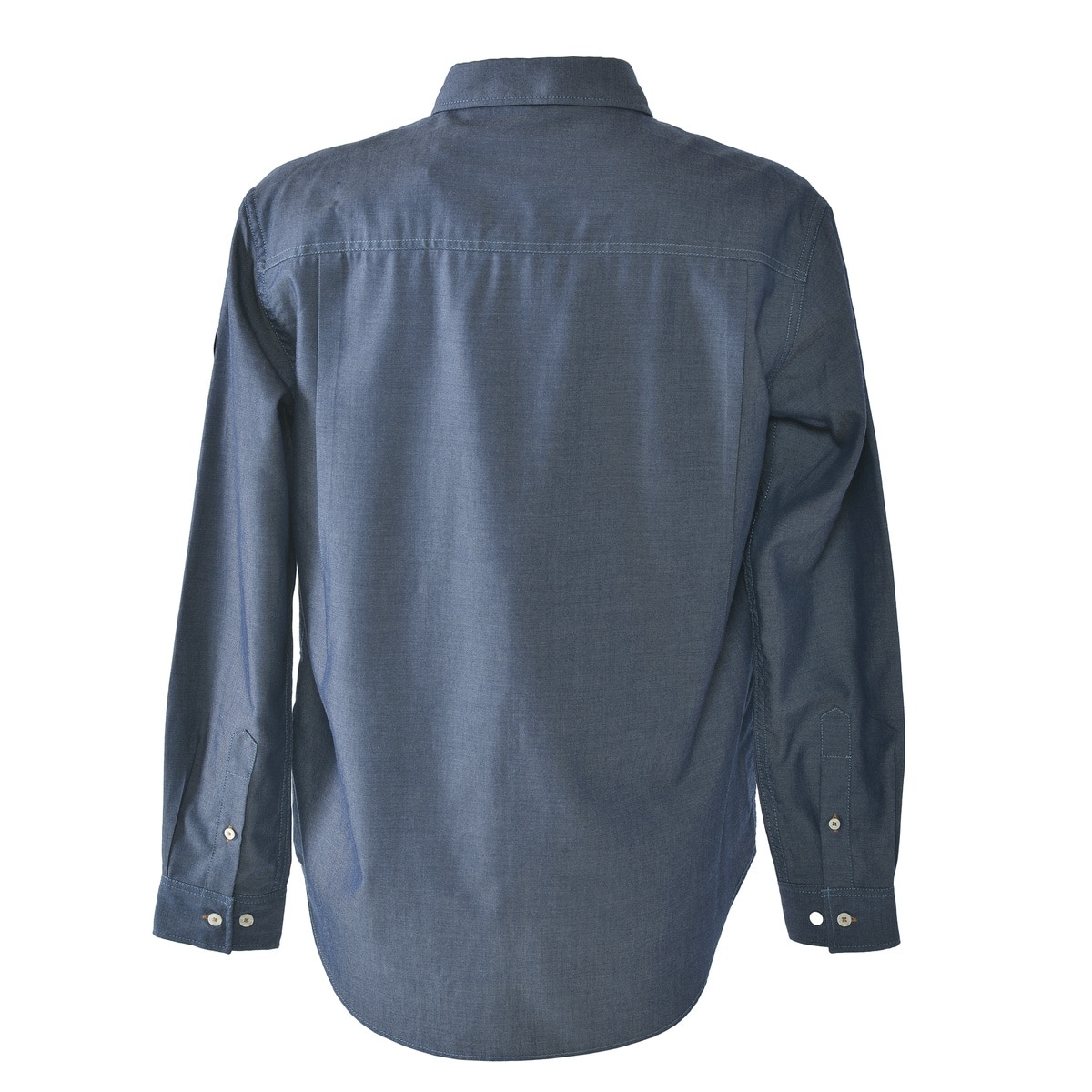 両胸のフラップや環縫いなどの特徴的な仕様に加え、左胸にロゴと旗モチーフを組み合わせた刺繍をあしらい、洗練されたディテールを表現。