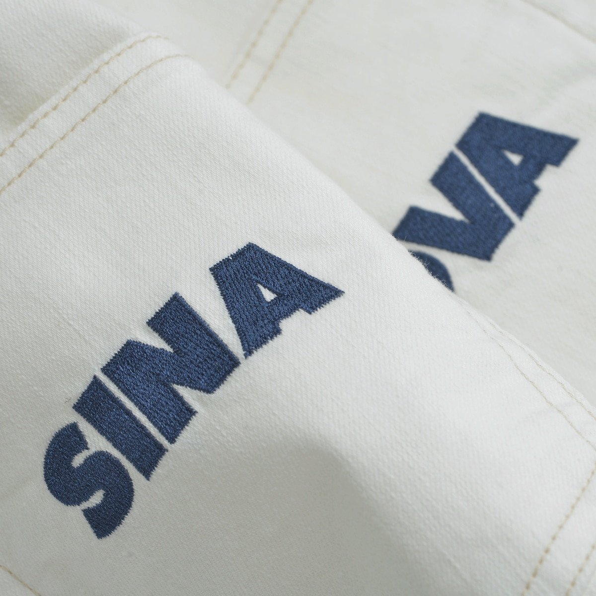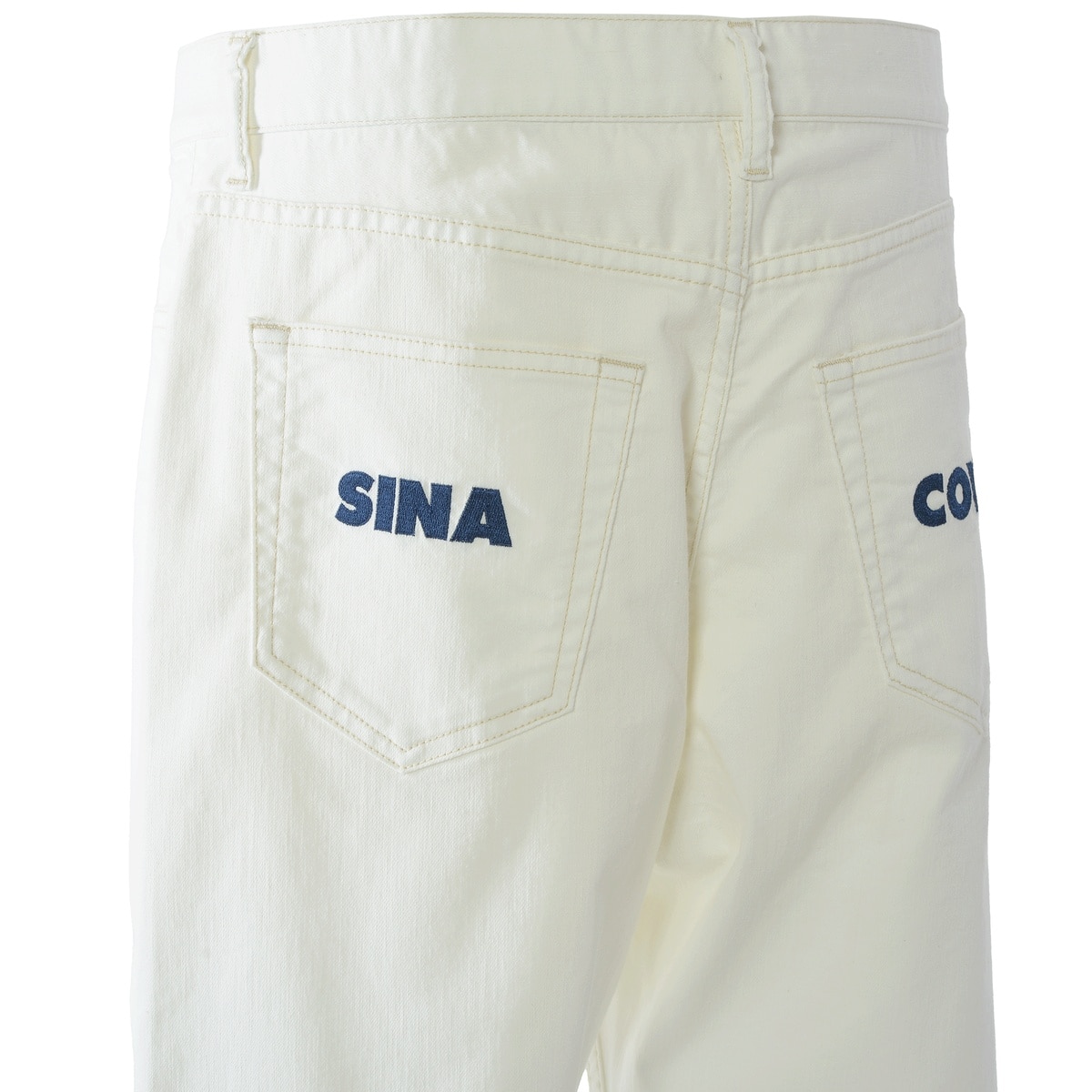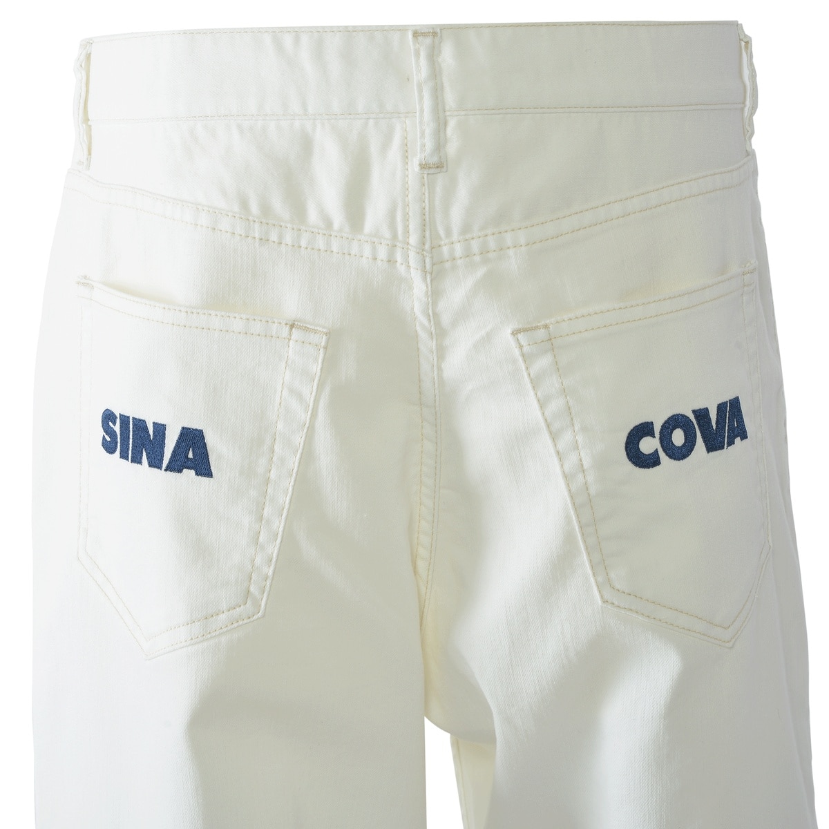 後ろポケットに左右でSINA COVAロゴ刺繍をあしらい、洗練されたディテールを表現。標準サイズの設定により、自然なフィット感を提供し、幅広い体型に対応します。