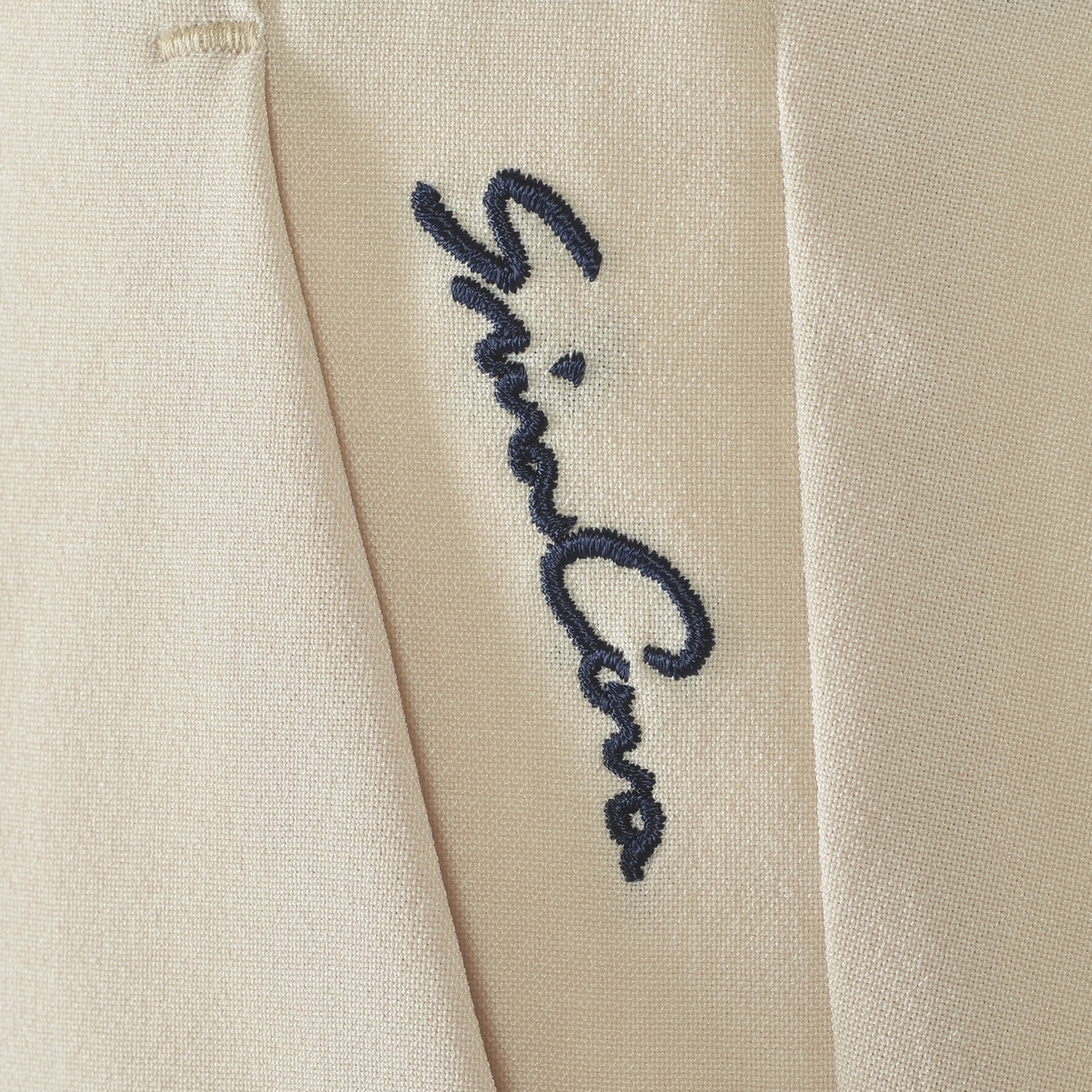 デザインはコーディネートの邪魔をしないよう、シンプルに左ポケット口にロゴ刺繍を配置。控えめながらもブランドアイデンティティを表現しています。