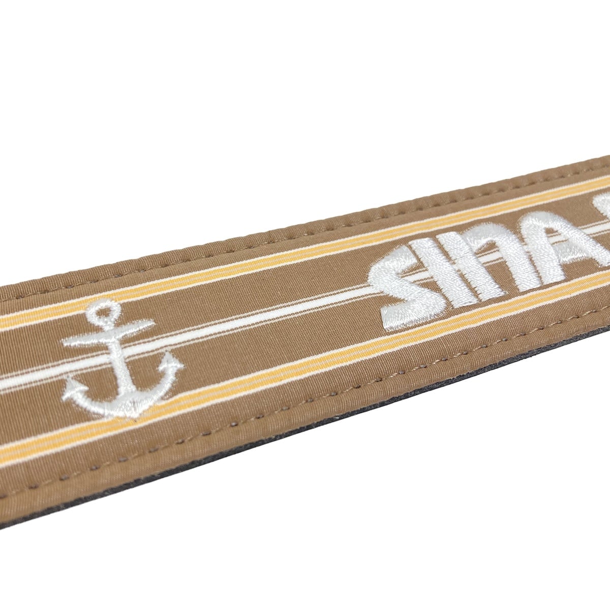 帯部分には柄違いのマルチストライプを採用し、リピートでロゴとイカリの刺繍をあしらった洗練されたデザインです。