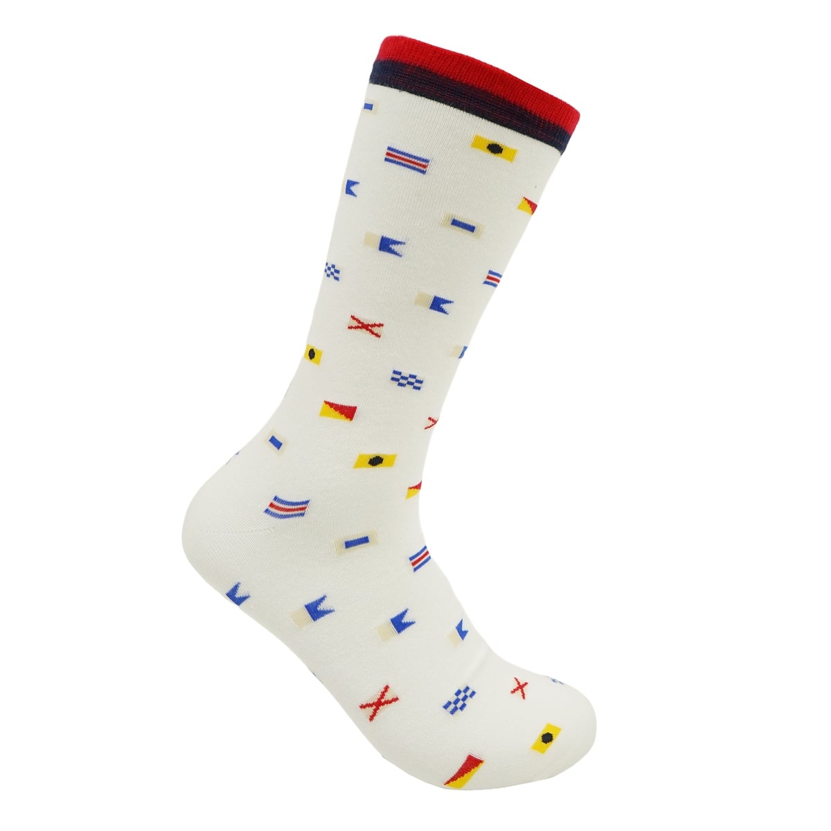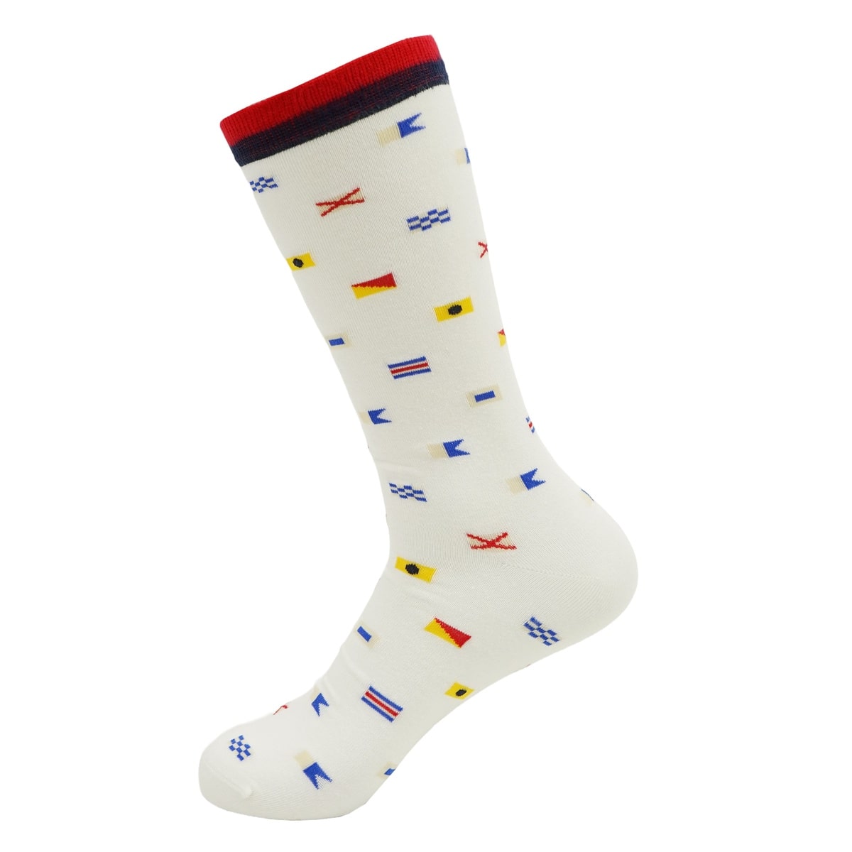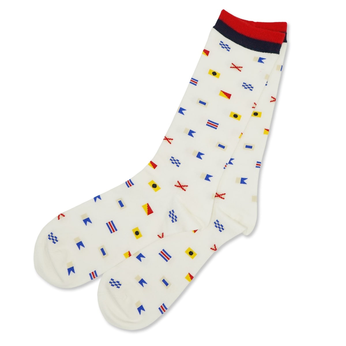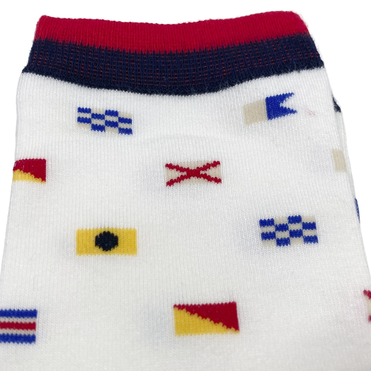 国際信号旗のモチーフが、航海や冒険のロマンを足元に呼び起こします。
