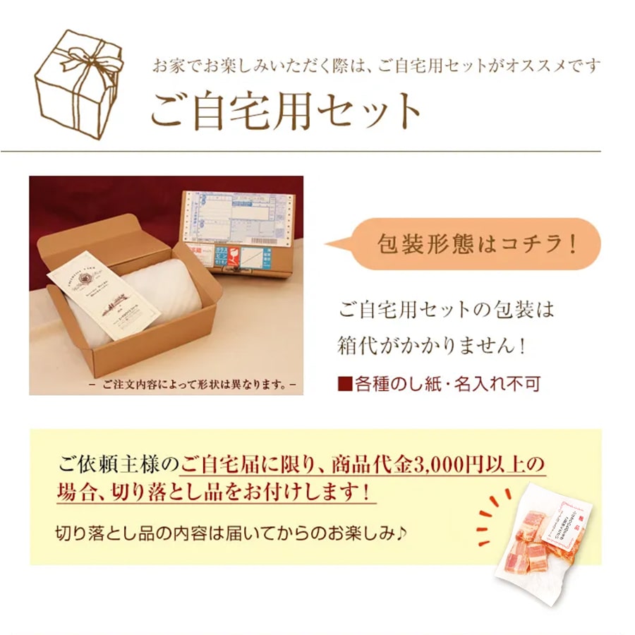 特大ベーコン(650g)×1 ロースハム(200g)×1 焼豚(280g)×1 スモークスペアリブ(280g)×1 ボロニアタイプフランク(200g)×1