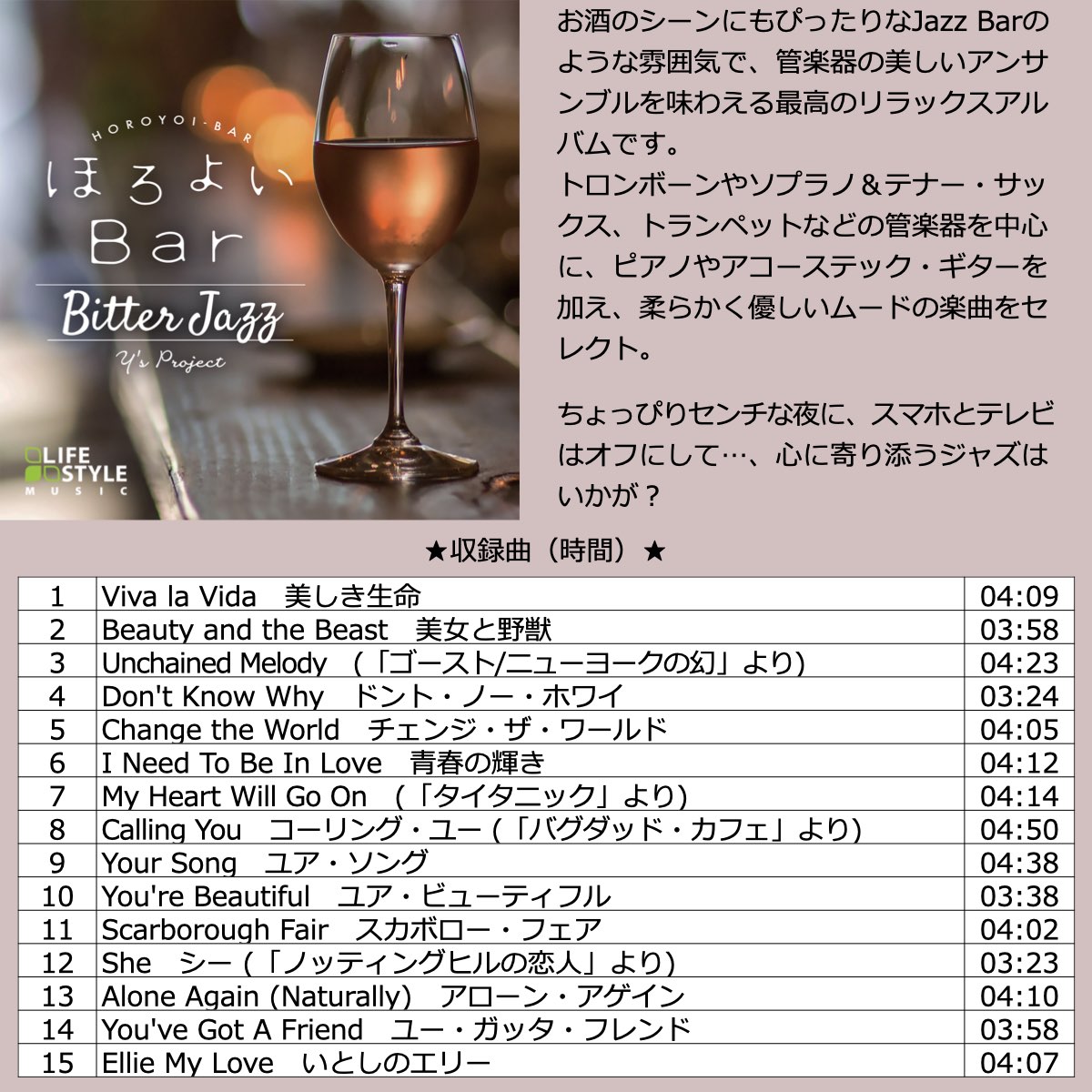 ※曲順 01-15はアルバム「ほろよいBar -ビター・ジャズ」、曲順16-30はアルバム「ほろよいBar -スウィート・ジャズ」、曲順31-45はアルバム「夜カフェ -ジャズ・ピアノ」に、それぞれ収録されている曲となります。
