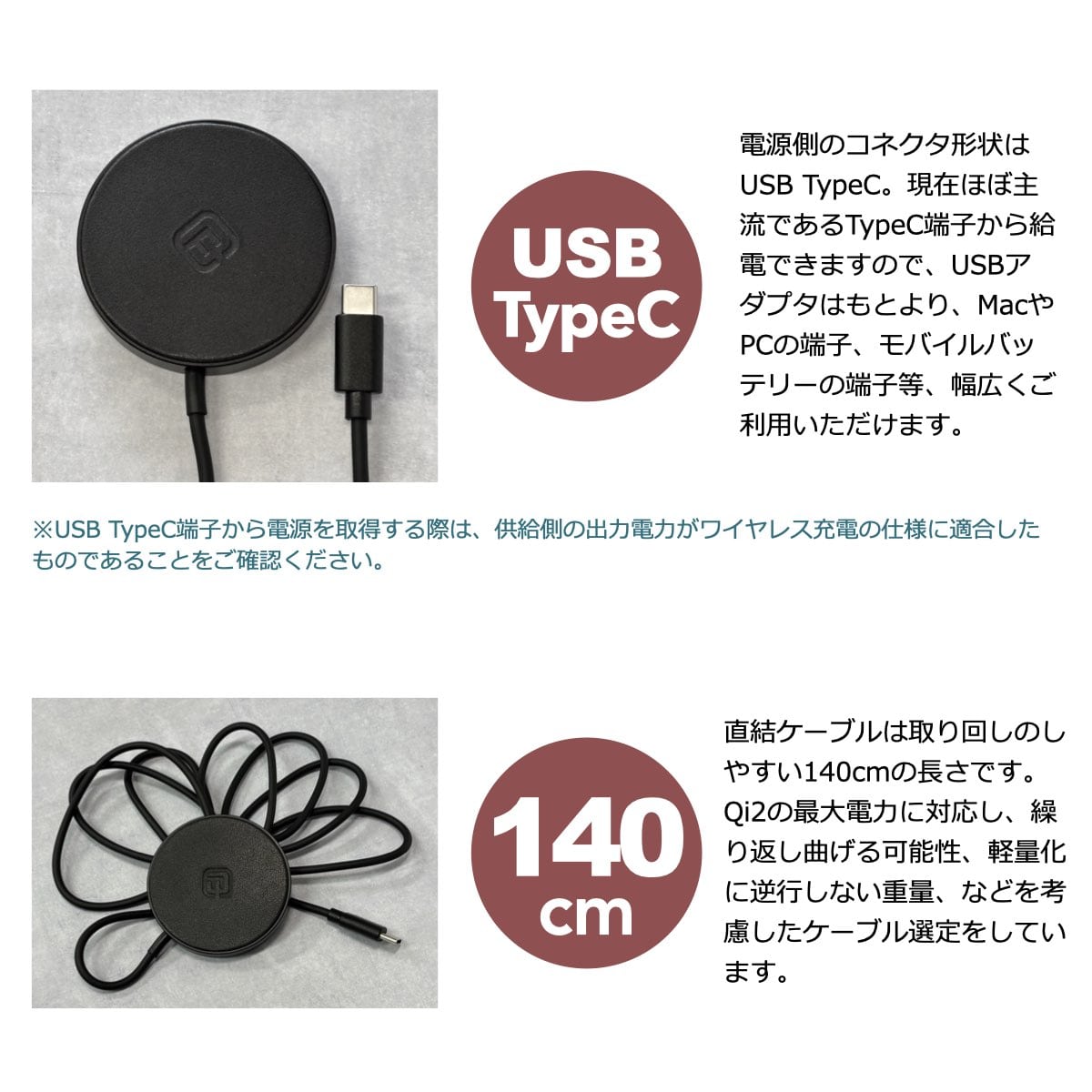 次世代ワイヤレス充電器規格 Qi2規格に準拠。iPhoneのMagSafe規格とも互換性があり、Qi搭載のAndroid端末も充電可能。USB-PDに対応し最大15Wの高速充電が可能です。
