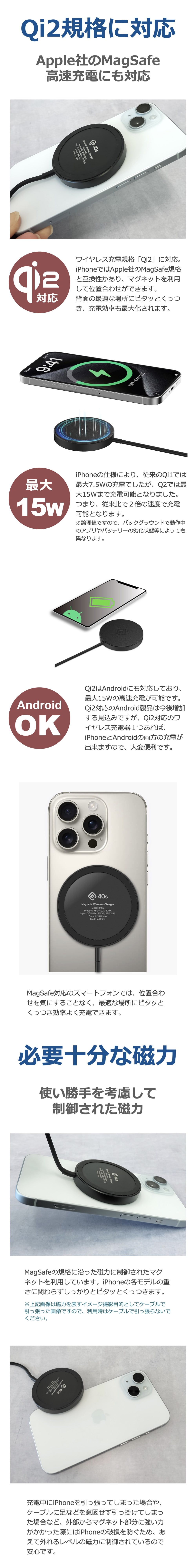 - > (2個セット)Qi2対応 ワイヤレス充電器 MagSafe互換 15W 急速充電 iPhone Android 40s MS2