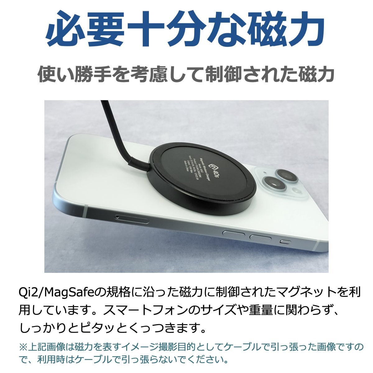 ・Qi2 MagSafe対応機種: iPhone 17, iPhone 17e, iPhone17 Pro, iPhone17 Pro Max, iPhone Air, iPhone16, iPhone 16 Plus, iPhone16 Pro, iPhone16 ProMax, iPhone15, iPhone 15 Plus, iPhone15 Pro, iPhone15 ProMax, iPhone14, iPhone 14plus, iPhone 14 Pro, iPhone14 ProMax, iPhone13, iPhone 13mini, iPhone 13 Pro, iPhone13 Pro Max, iPhone12, iPhone 12 mini, iPhone12 Pro, iPhone 12 Pro Max ・ Qi ワイヤレス充電 対応機種: iPhone(アイフォン): iPhone16e, iPhoneSE3(第3世代), iPhoneSE2(第2世代), iPhone11, iPhone 11Pro, iPhone11 Pro Max, iPhoneXS iPhone XS Max, iPhoneXR, iPhoneX, iPhone8, iPhone 8 Plus ・ Android (アンドロイド): Qi2に対応したAndroidスマートフォン ※上記に限らず、Qi規格対応と表示のあるスマホ、置くだけ充電 対応の各端末、イヤホンやウオッチ等の小物機器等、Qiワイヤレス充電の標準規格による充電仕様に対応した、スマートフォン、タブレット、ガジェットの充電に対応しますが、全ての機器に動作保証するものではありません。 ※Qi2及びMagSafe(磁力+充電)は端末自体に機能として組み込まれた製品が動作保証対象となります。未対応の端末にシールやケース等の外部パーツを用いてQi2やMagSafe対応として独自改良・加工されたものは保証対象外となります。お客様自身のご判断でご利用ください。 |