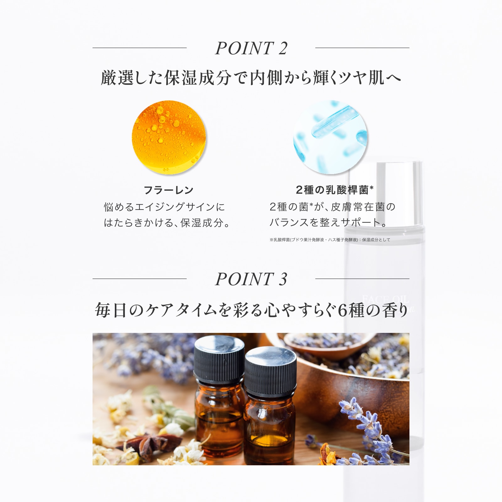 【全成分】スクワラン・水・パルミチン酸エチルへキシル・DPG・オリーブ果実油・ブドウ種子油・フラーレン・ラベンダー油・ニオイテンジクアオイ油・ベルガモット果実油・トコフェロール・イランイラン花油・ニュウコウジュ油・ザクロ種子油・スクレロカリアビレア種子油・ビターオレンジ花油・ビターオレンジ葉/枝油・ヒマワリ種子油・ローマカミツレ花油・アセチルヒアルロン酸Na・加水分解ヒアルロン酸・乳酸桿菌/ブドウ果汁発酵液・グルコノバクター/ハチミツ発酵液・シロバナルーピン種子エキス・乳酸桿菌/ハス種子発酵液・ヒアルロン酸Na・岩石抽出物・エチルヘキシルグリセリン・クエン酸・ミネラル塩・クエン酸Na・PVP・BG