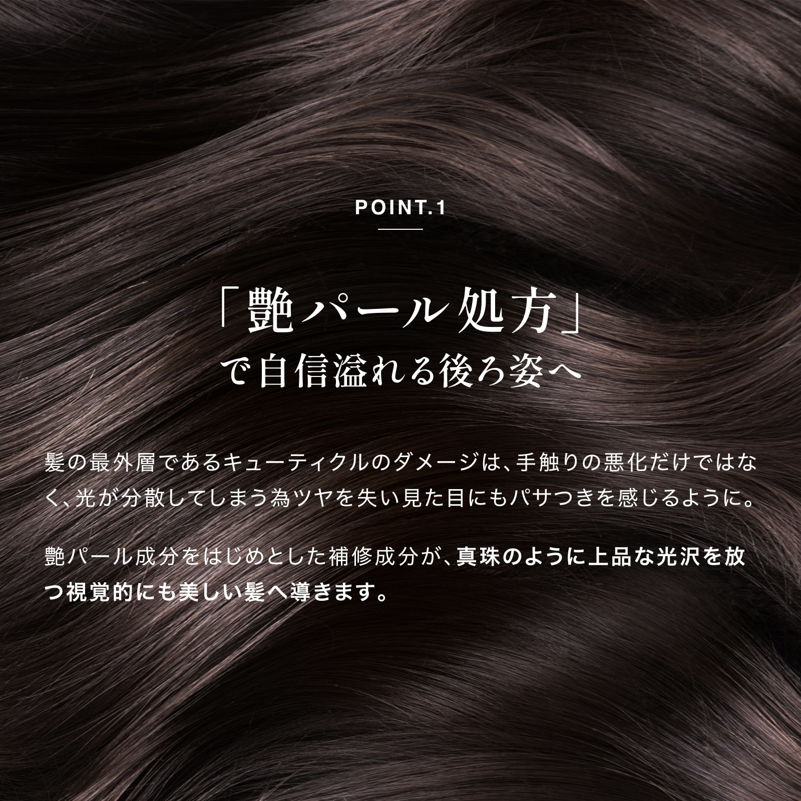 【全成分】水、セタノール、ベヘントリモニウムクロリド、グリセリン、ジメチコン、ホホバ種子油、オリーブ果実油、ジラウロイルグルタミン酸リシンNa、加水分解コラーゲン、加水分解ケラチン(カシミヤヤギ)、加水分解ケラチン(羊毛)、プラセンタエキス、エンドウ芽エキス、オランダガラシ葉/茎エキス、ミツイシコンブエキス、クズ根エキス、シロキクラゲ多糖体、グリコシルトレハロース、加水分解水添デンプン・メドウフォーム-δ-ラクトン、ヘマチン、加水分解エンドウタンパク、(ジヒドロキシメチルシリルプロポキシ)ヒドロキシプロピル加水分解シルク、加水分解コンキオリンタンパク、ゼイン、ユズ果実エキス、ポリグルタミン酸、加水分解コラーゲンPGプロピルメチルシランジオール、カギイバラノリエキス、グルコン酸K、フルセラリアルムブリカリスエキス、ヒアルロン酸ヒドロキシプロピルトリモニウム、ジココジモニウムクロリド、ステアルトリモニウムクロリド、アルガニアスピノサ核油、アモジメチコン、シクロヘキサン-1,4-ジカルボン酸ビスエトキシジグリコール、PPG-3カプリリルエーテル、トコフェロール、ステアリルアルコール、エチルヘキシルグリセリン、カプリル酸グリセリル、イソマルト、BG、DPG、ペンチレングリコール、ヒドロキシエチルセルロース、イソプロパノール、クエン酸、クエン酸Na、乳酸、EDTA-2Na、安息香酸Na、エタノール、香料、フェノキシエタノール