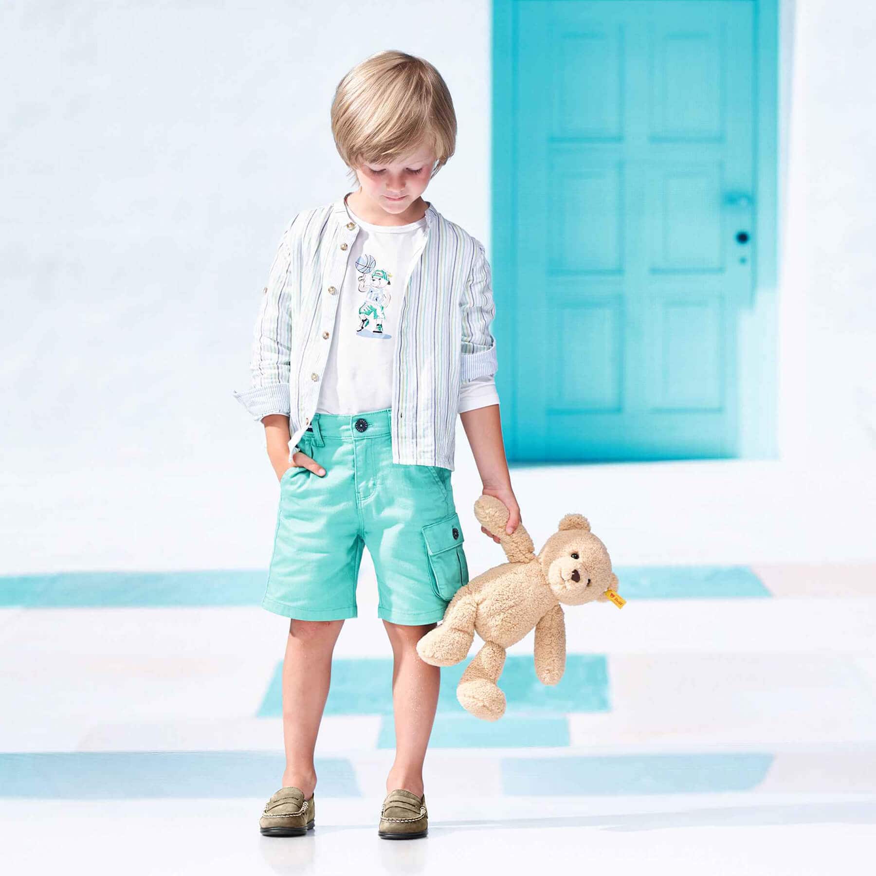 テディベア誕生120周年を記念して、家族をテーマに制作されたシリーズです。家族の元気の源はこどもたち。あふれるような好奇心と楽しいことを見つけ出すエネルギーは、家族を愛と優しさで満たします。お兄さんのベンは、やわらかいふわふわのテディフリースで覆われていて、抱きしめると元気をもらえます。ベンは彼のご先祖様でシュタイフの最初のベアとなった「55PB」をとても誇りに思っています。