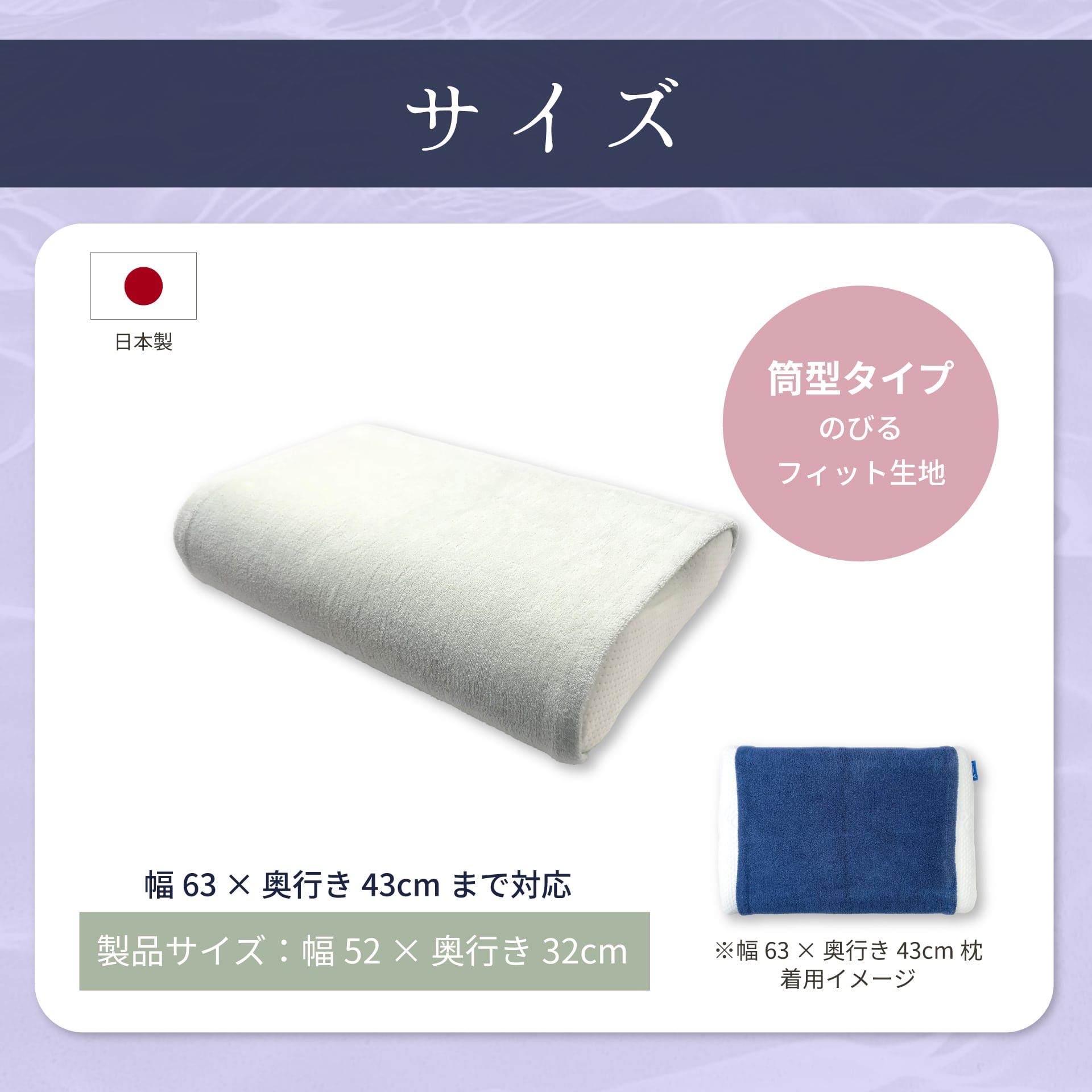 【サイズ】(約)奥行43 x 幅63 cmまでの枕に対応