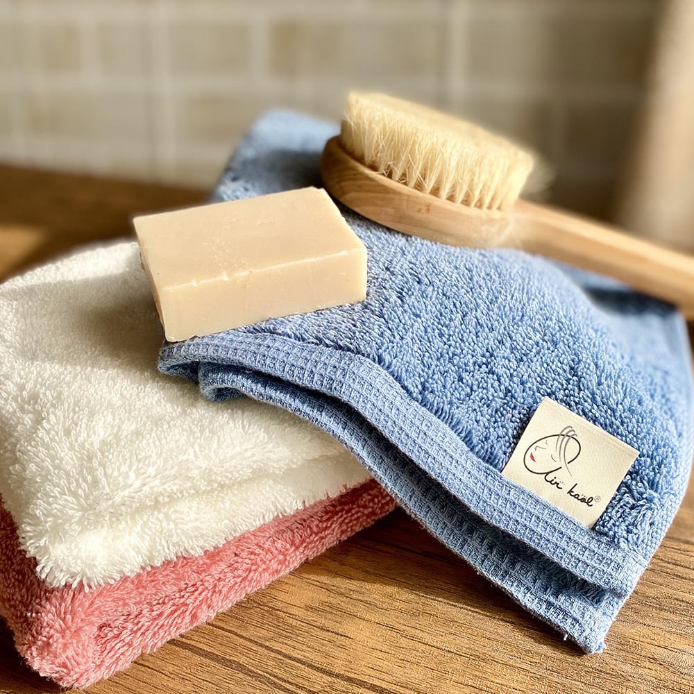 SuperZero(スーパーゼロ)は、コットンと空気が素材です。エアーかおるの重さは一般的なタオルの約半分。 軽いのにふわふわ。肌に優しいタオルです。4. 洗濯後の乾きが速い