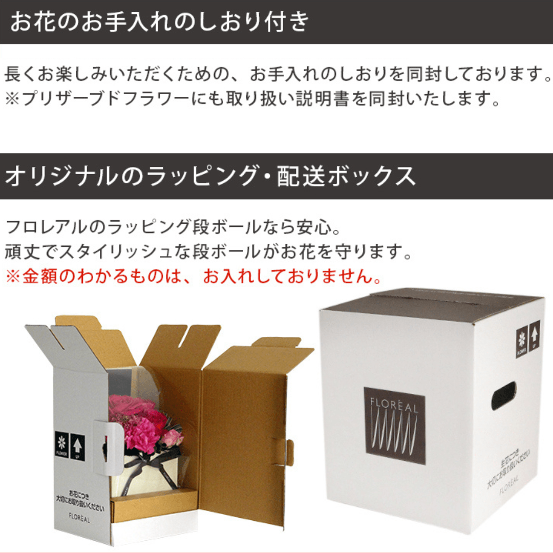 オリジナルのラッピング・配送ボックス(頑丈でスタイリッシュな段ボールがお花を守ります。)