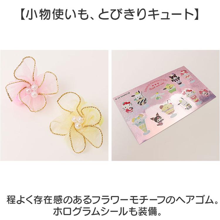 ・程よく存在感のあるフラワーモチーフのヘアゴム。ホログラムシールも装備。