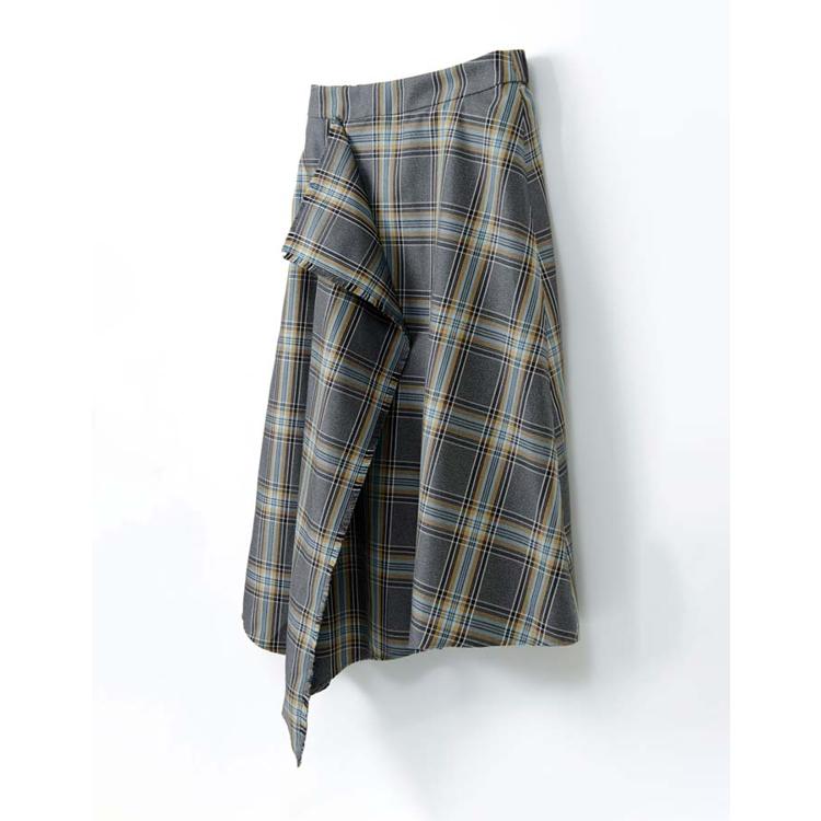 ・ラップ風のアシンメトリーなデザインでマチュアな印象のフリンジスカート。