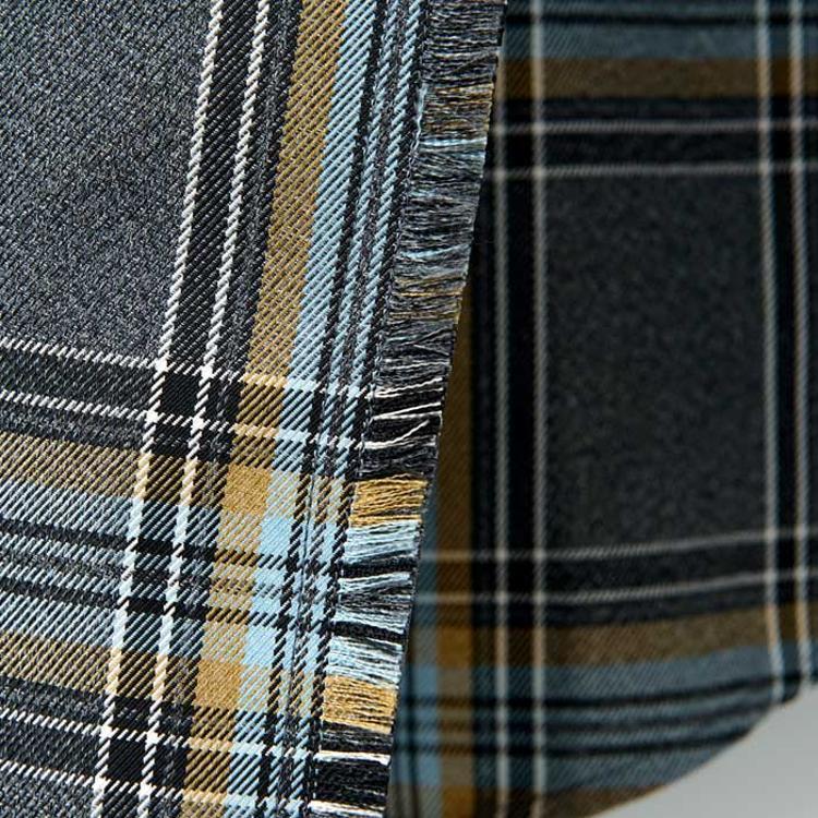 3色のリサイクル糸を三子撚りしメランジを表現した先染めチェック生地。