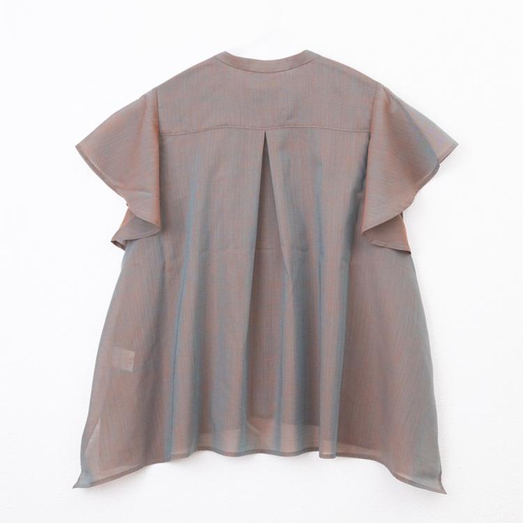 ・光の当たり方や角度次第で色の表情が変わるバンドカラーブラウス。