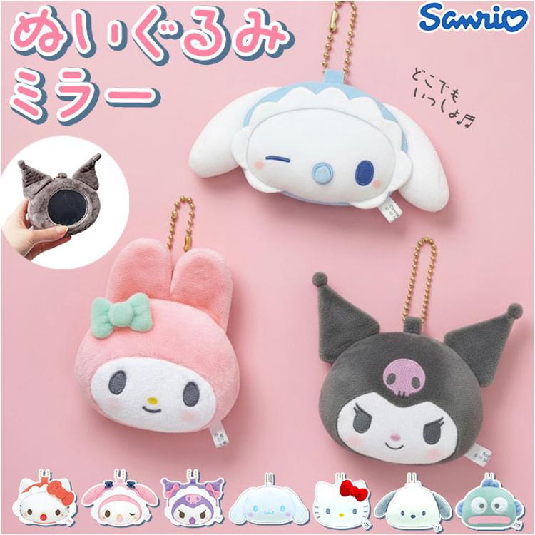 キーホルダー ぬいぐるみ 通販 ミラー 手鏡 マスコット コンパクトミラー 贈り物 ギフト かわいい 身だしなみ 化粧直し 癒し クロミ ハローキティ シナモロール マイメロディ ポチャッコ
