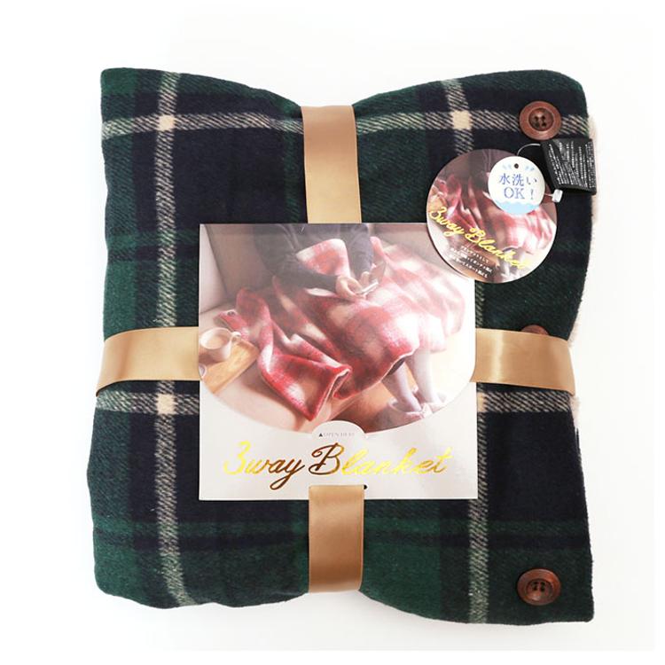 ・肩から羽織ってポンチョ風に、腰に巻いてスカート風に。もちろんひざ掛けとしても使える、3wayブランケット。