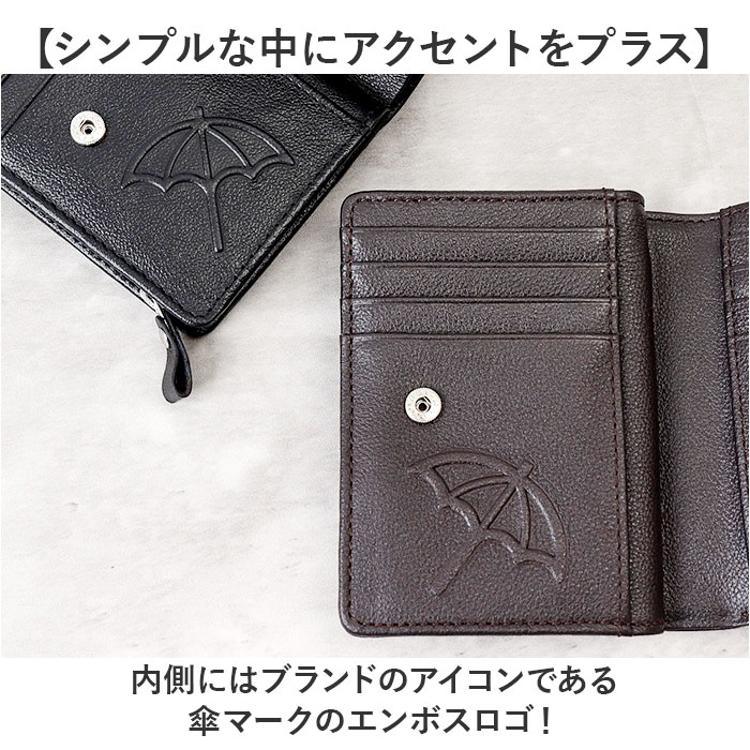 ・内側にはブランドのアイコンである傘マークのエンボスロゴ!かぶせ部分の折り返しもポイント。
