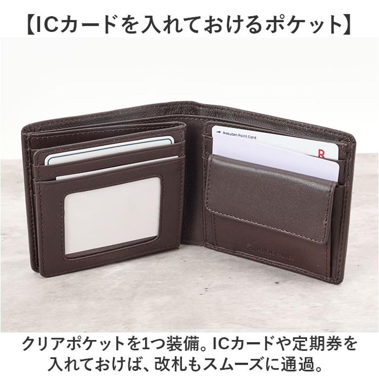 ・内側:スナップボタン式小銭入れ×1、お札入れ×3、カードポケット×13(2つはお札入れ内に配置)、クリア窓ポケット×1、フリーポケット×1