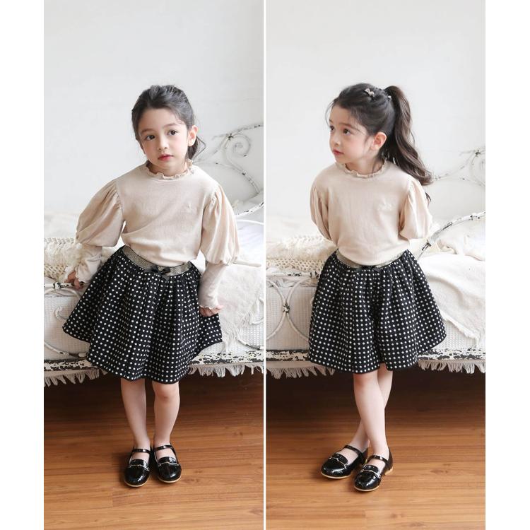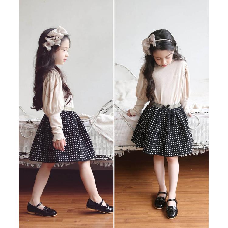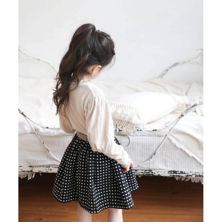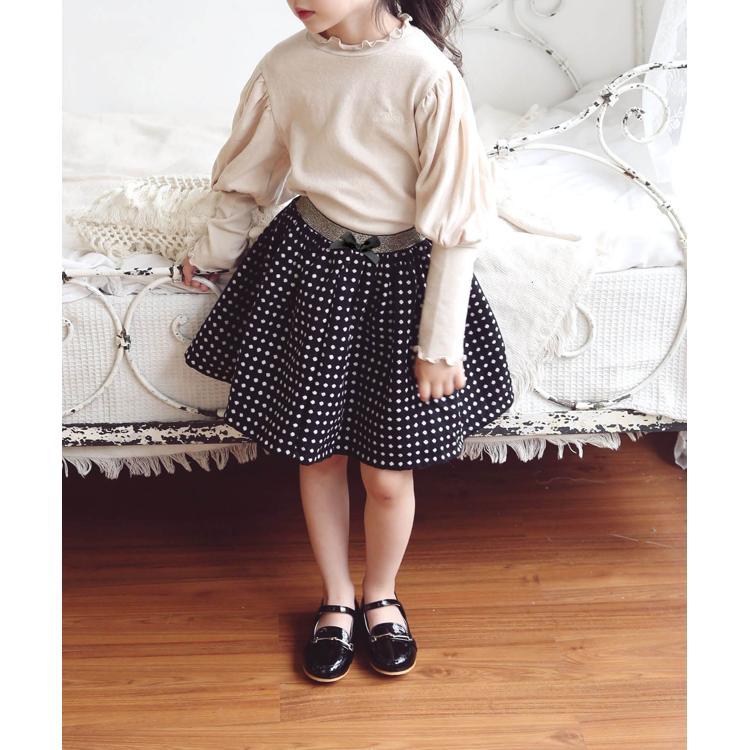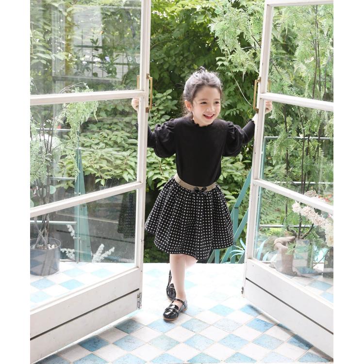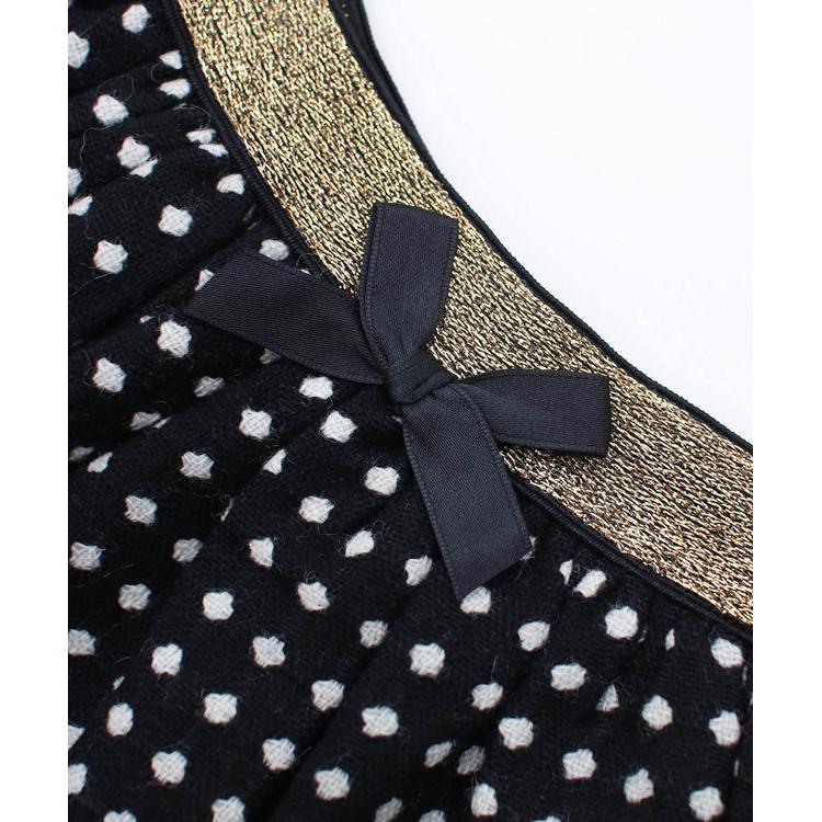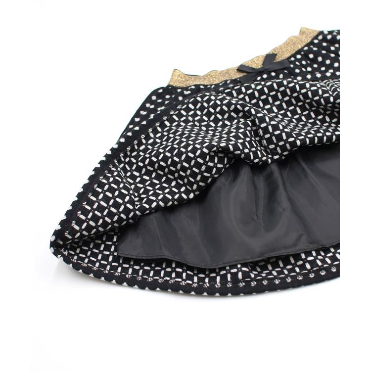 ・生地本来の厚手の素材やハリ感で表現したふんわりボリューム感がさりげなく可愛い~ 規則正しくそろえたドット柄は、チェック柄にも見え トップス次第でフォーマルにもデイリーユースに コーディネートしやすい嬉しいスカートに。ブラウスもカットソーも「イン」するだけで キラキラとしたゴールドが全身を引き締めて見せてくれるポイント センターのプチリボンも、女の子気分を高めてくれる秘訣!季節やシーンに問わず使いやすいブラックで、長くご利用いただけます。