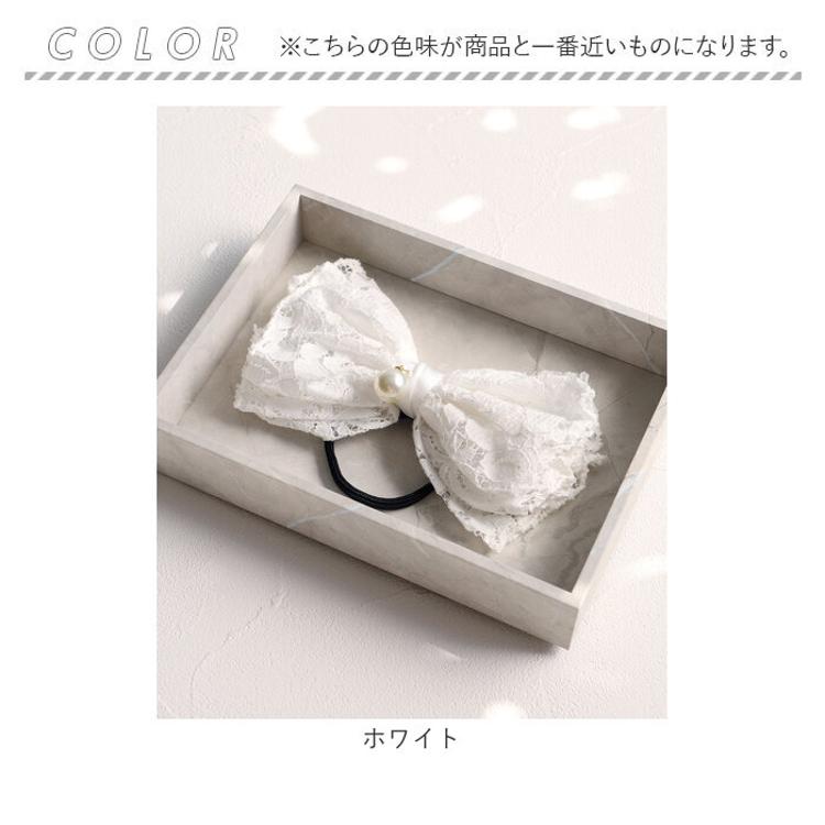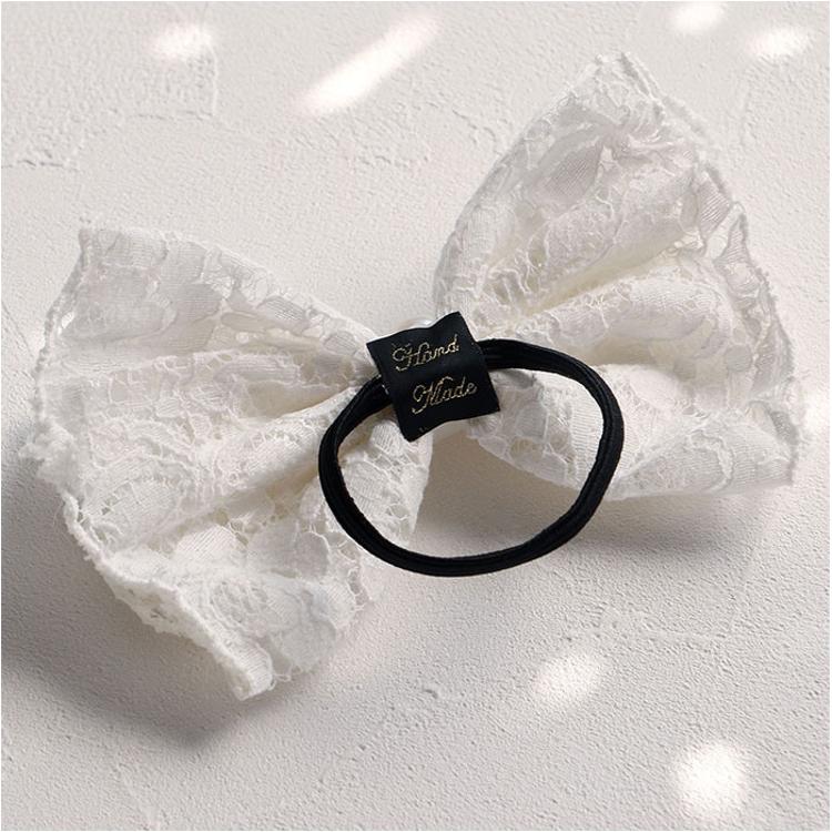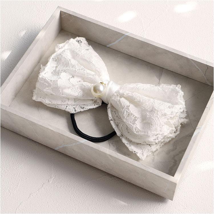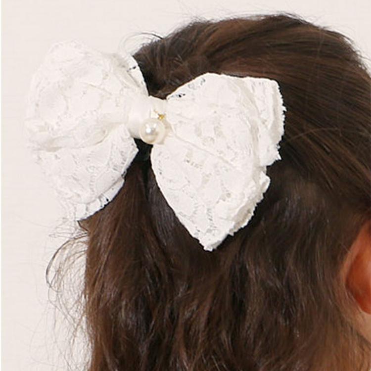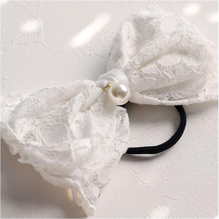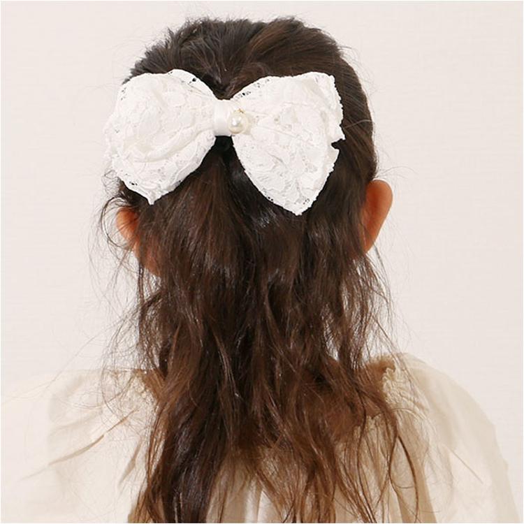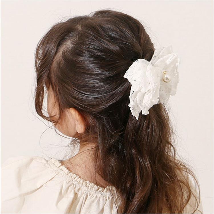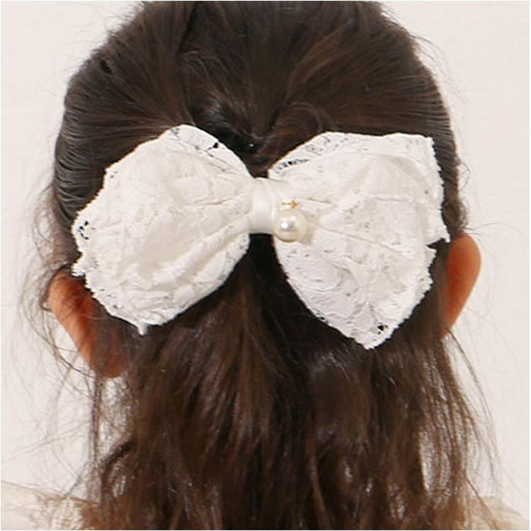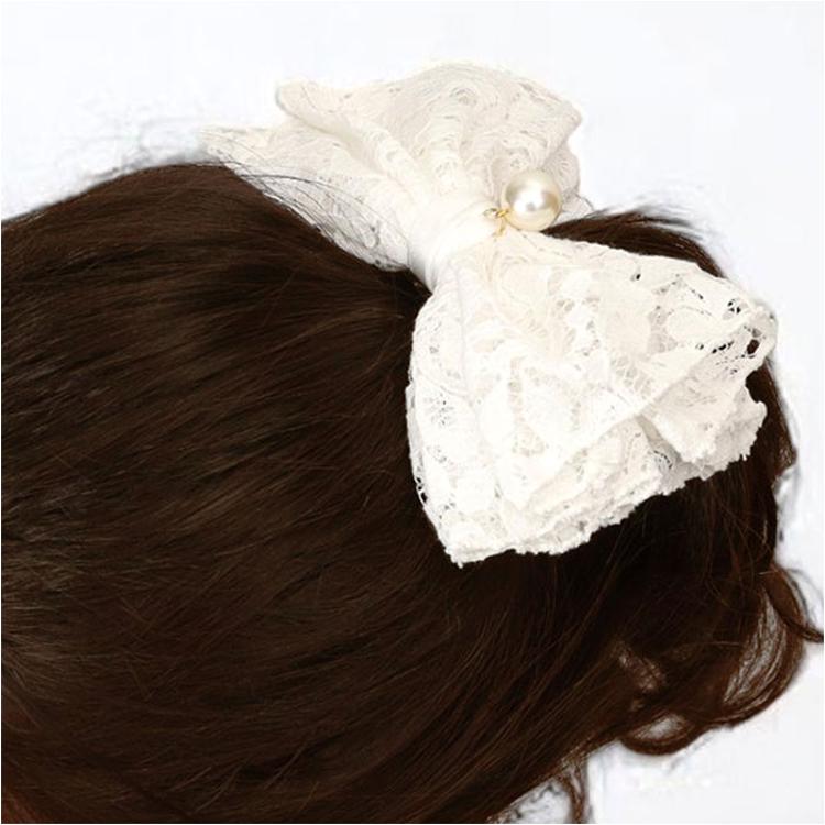 ・レースとイミテーションパールをドッキングした、上品な雰囲気のヘアアクセ。
