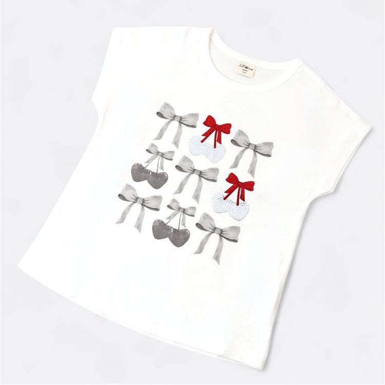 ・プリントされたリボン&キラッと輝いて立体感のあるチェリーモチーフ♪可愛さ満点のTシャツ。