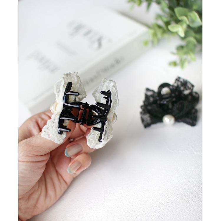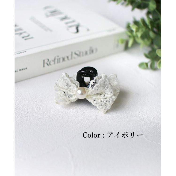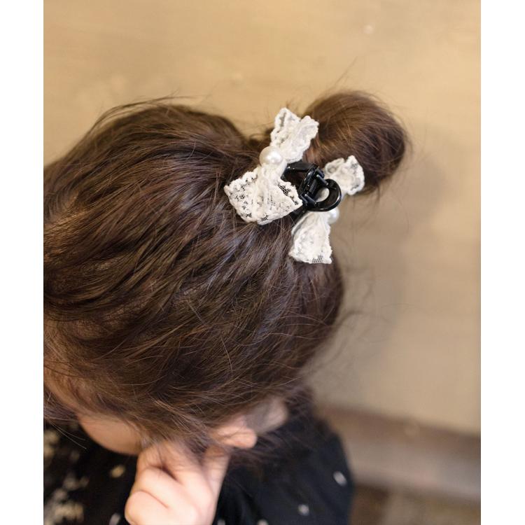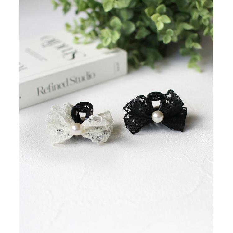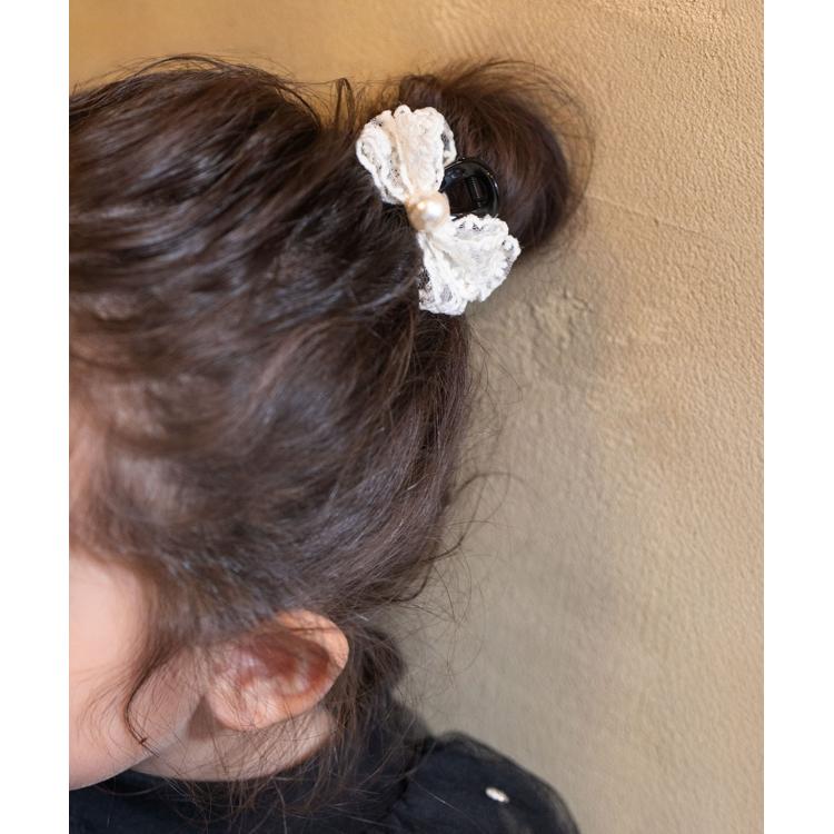 商品説明・クレア ヘアクリップは、レースのリボンと真ん中に輝くパールが髪に華やかさをプラスするアイテムです。