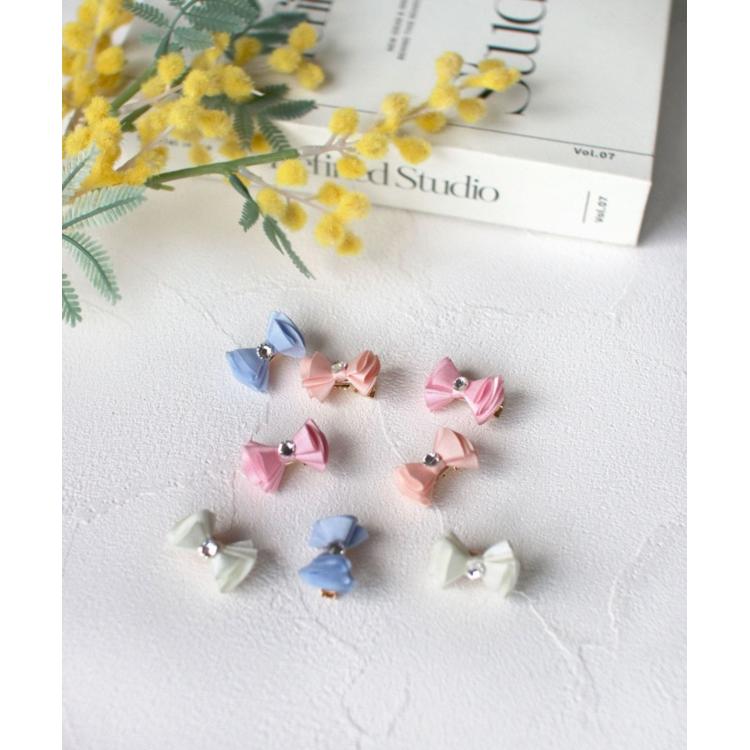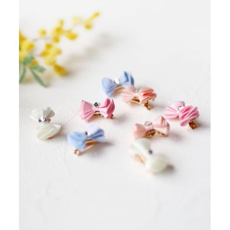 商品説明・Roraメロディアヘアクリップ 2個セットは、小さなリボンが髪に可愛さをプラス。真ん中に輝くラインストーンが華やかさを引き立てます。
