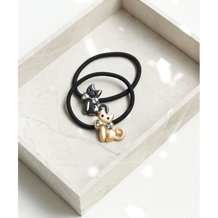 ・ミャウ ヘアゴムは、ちょこんと座った可愛い猫モチーフのヘアゴム。ねこの胸元にはキラキラ輝く大きなリボンがついていて、まるでおしゃれな猫ちゃんが髪に乗っかっているようです♪