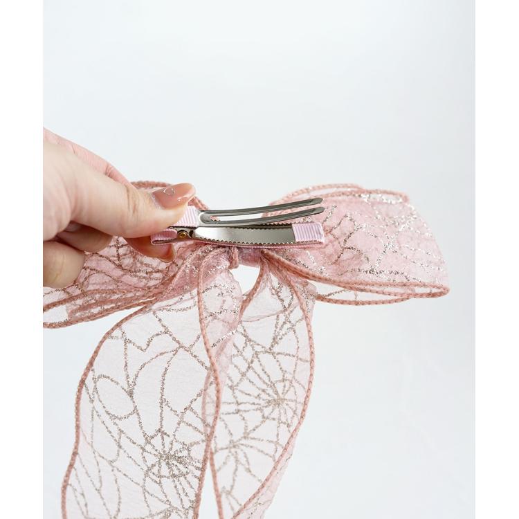 ・透け感のある軽やかなリボンには、きらきらラメのライン模様が施され、まるで星屑を散らしたような輝き。陽射しの中でキラめくたびに、思わず目を引く可愛さです。