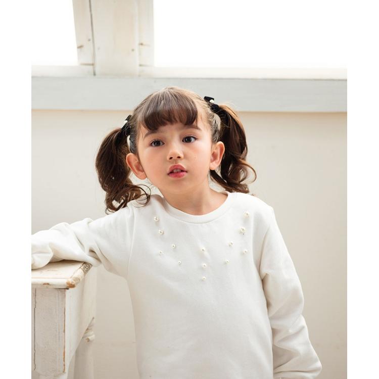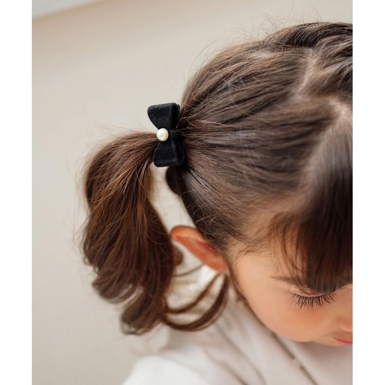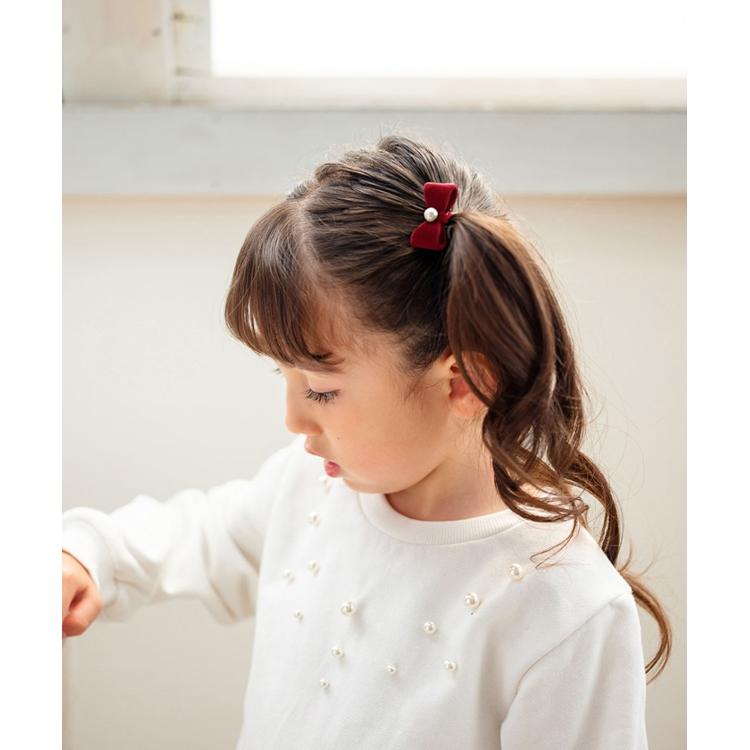 ・クラシカルなベルベット調のリボンには、きらりと輝くパールが上品なアクセントに。動くたびに、お子様の表情を一層可愛く引き立てる、心ときめくデザインです。
