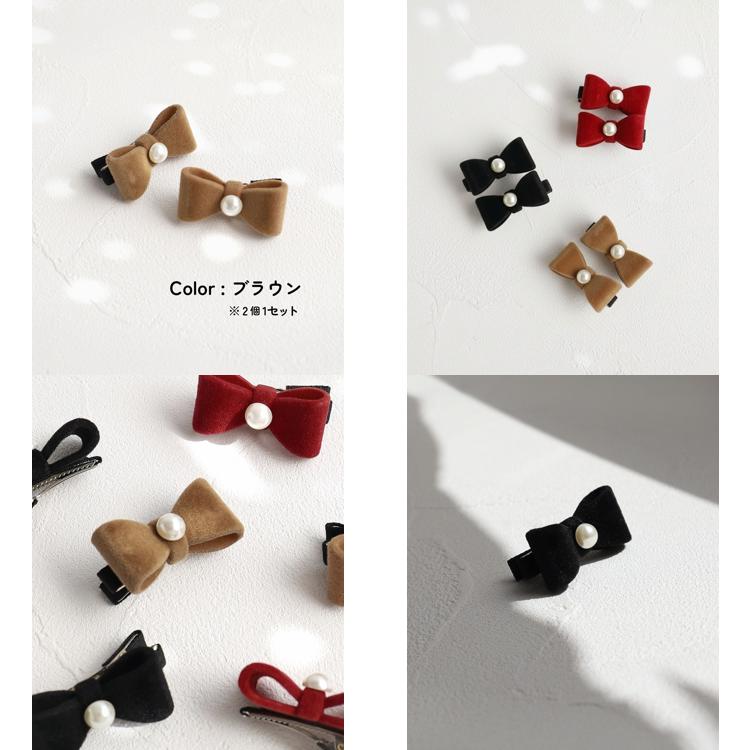 Rora ヘアクリップ キッズ 2個セット 通販 ベル ミニ リボン パール ベルベット ヘアークリップ 髪どめ 髪留め ヘアアクセサリー 髪飾り 子供 女の子 大人っぽい 卒園式 入学式 結婚式