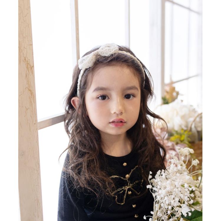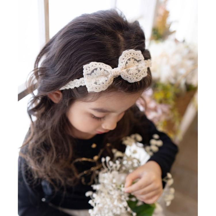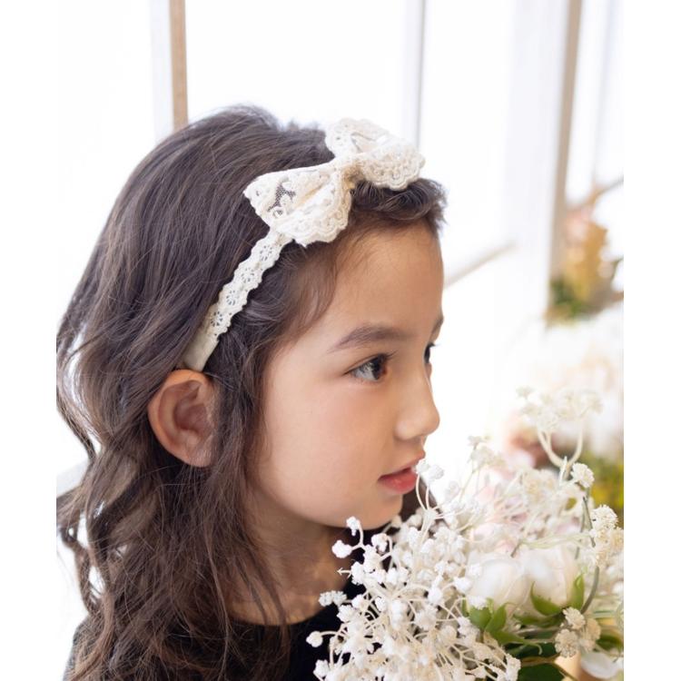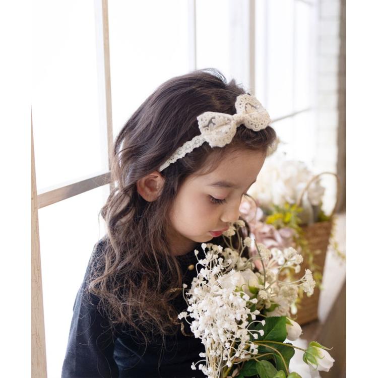 ・柔らかな素材感で締め付けすぎず、お子様にも快適にお使いいただけます。頭にフィットしやすくずれにくいので、元気いっぱいに遊んでも大丈夫。可憐なレースが、お子様の笑顔を一層輝かせます。