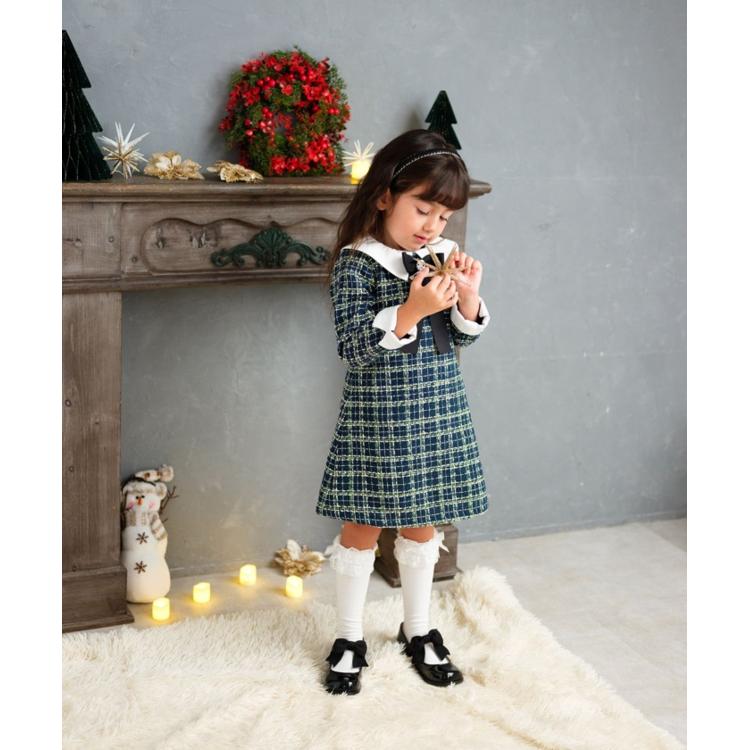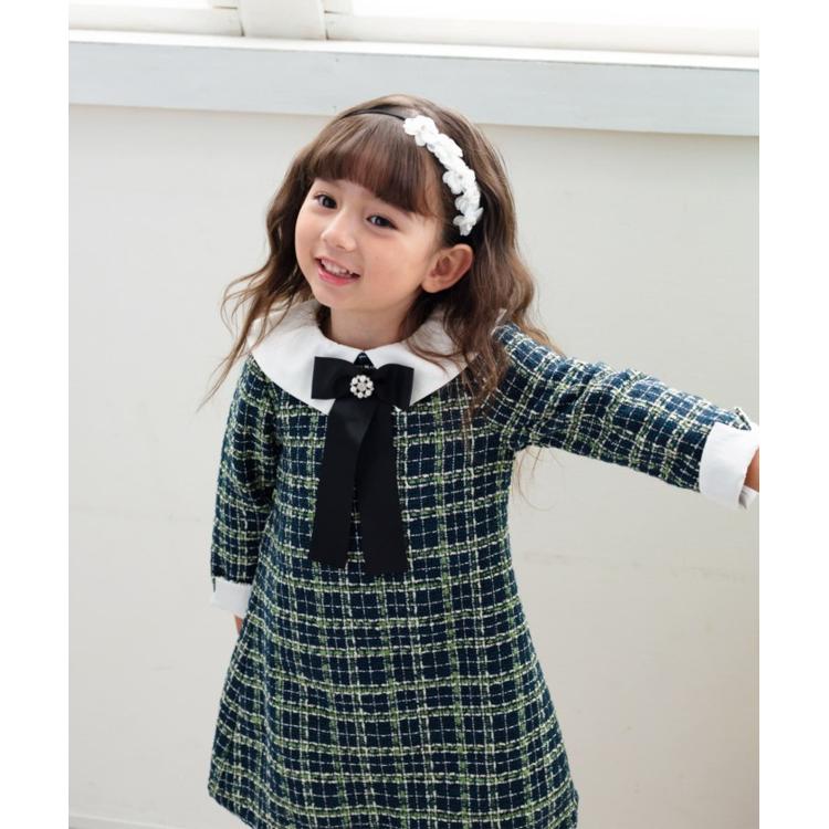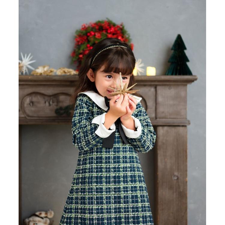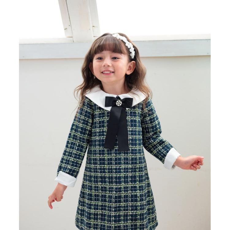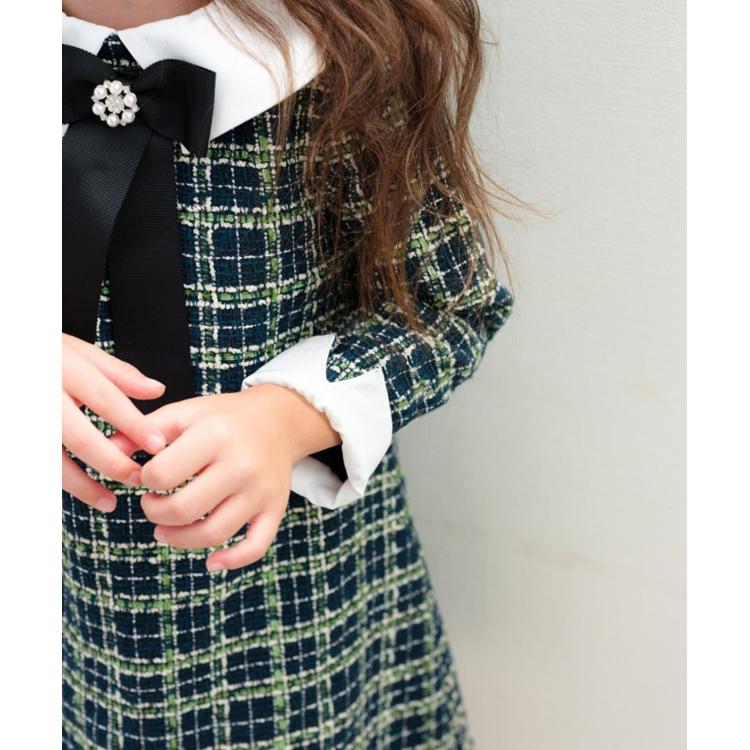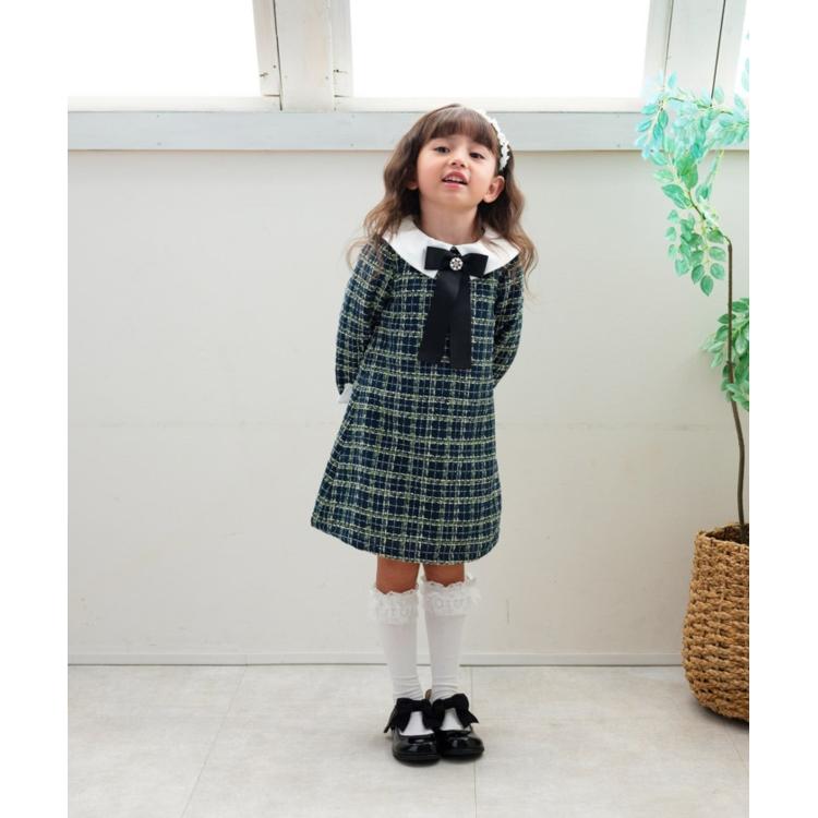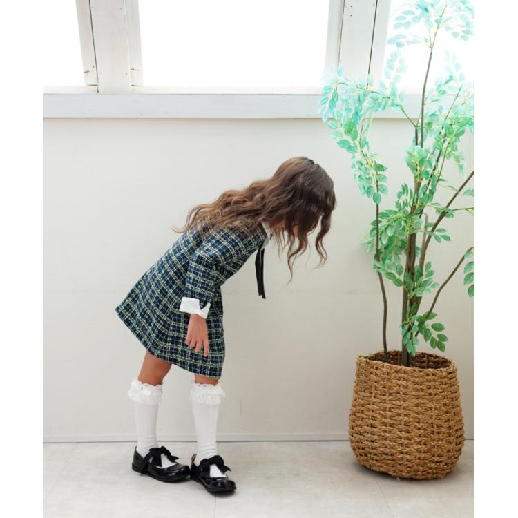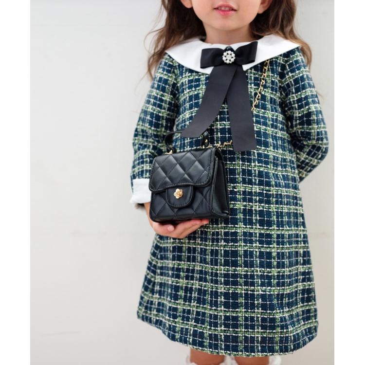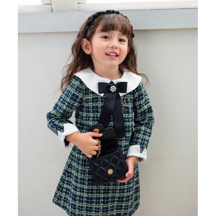 ・深みのあるグリーンのツイード生地が落ち着いた印象を与えつつも、華やかなアクセントに。