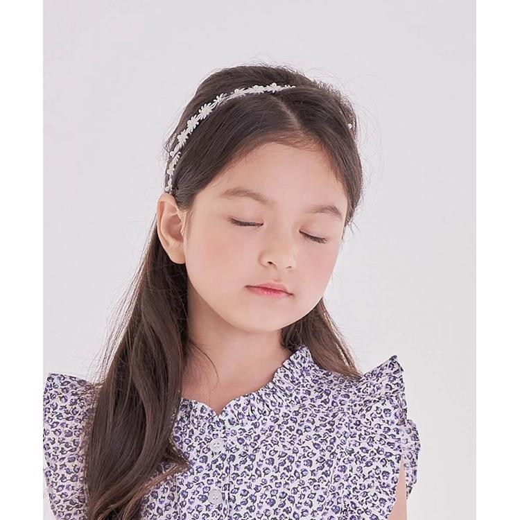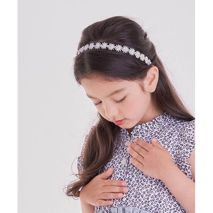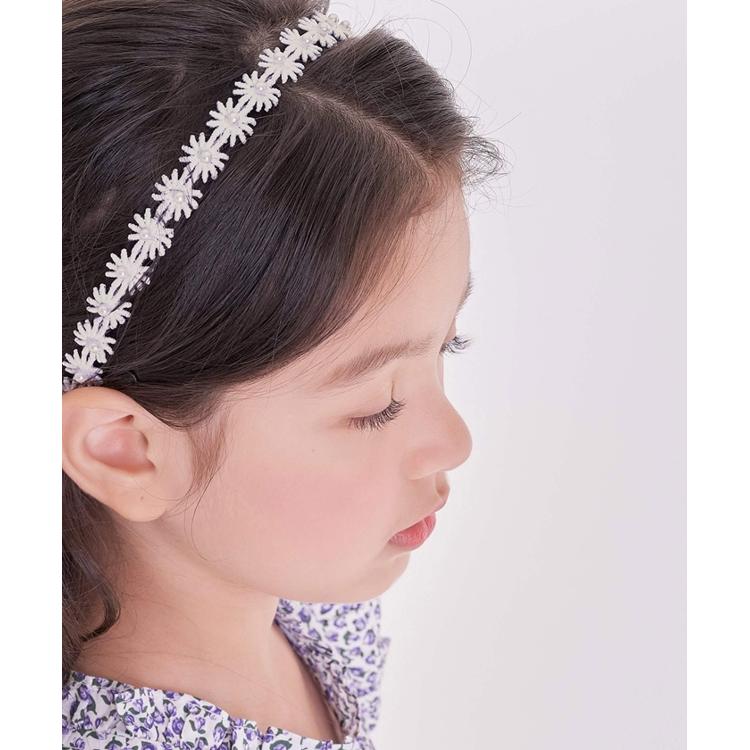 商品説明・お花モチーフのセンターにパールをあしらった繊細で女の子らしいデザインが愛らしい子供服Roraのデイジー カチューシャです。